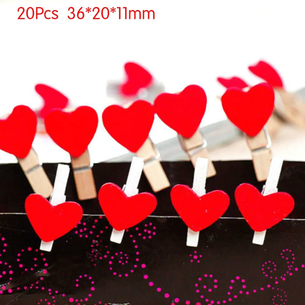 20 искусственных деревянных зажимов в форме сердца, деревянные зажи...