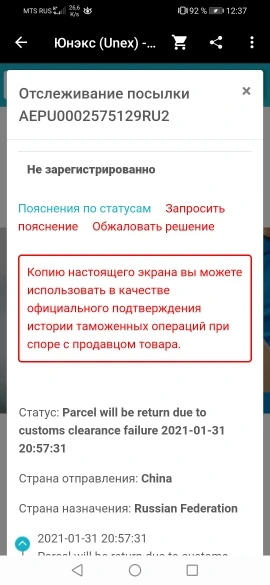 Товар развернули на таможне,деньги вернули