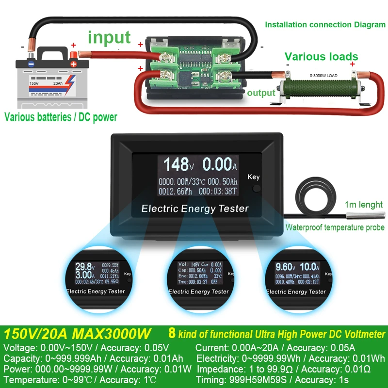 ATORCH измерители постоянного тока, цифровой вольтметр, амперметр, напряжение, амперметр, ваттметр, тестер напряжения, индикатор, ЖК-монитор