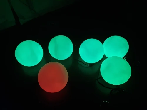 хороший продукт, один шар отличается по цвету свечения, возможно батарейки имеют разный заряд