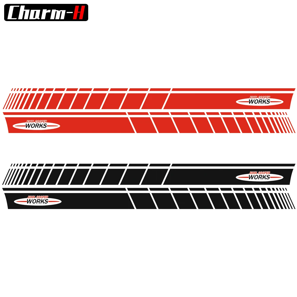 2 шт. Стайлинг автомобиля Наклейка на боковую юбку, дверь для MINI John Cooper Works R56 F56 JCW Graphics Stripes