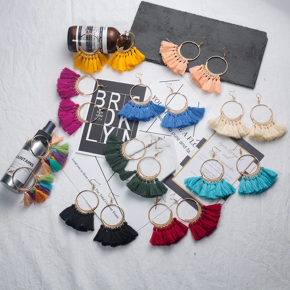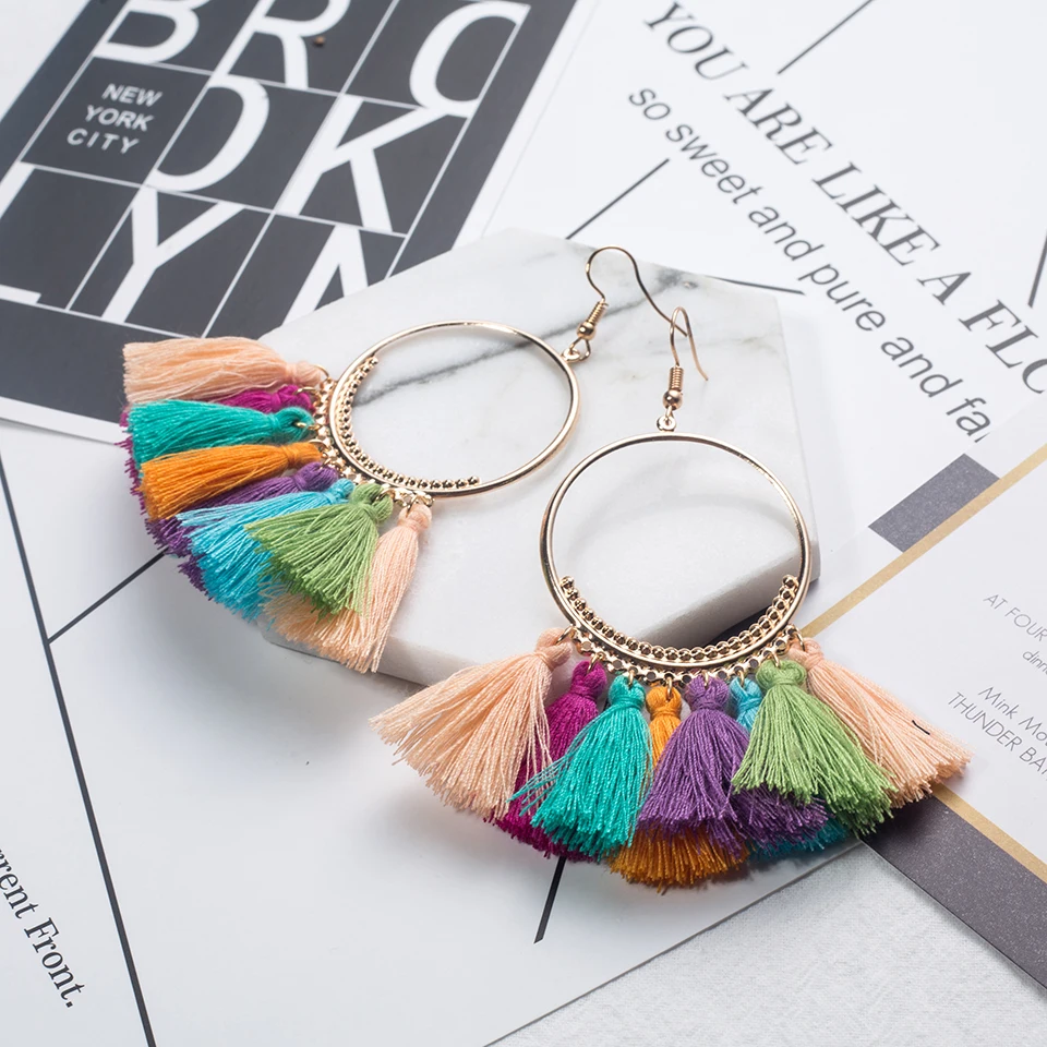 2020 модные богемные этнические серьги с бахромой и кисточками для женщин золотые круглые кольца Висячие серьги ювелирные изделия