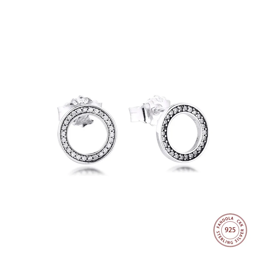 Женские серьги-гвоздики из 100% стерлингового серебра 925 пробы с прозрачным кубическим цирконием Forever Circle, эффектные Свадебные украшения