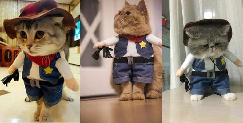 Забавный костюм для домашних животных, ковбойский костюм для косплея для кошек, на Хэллоуин, Рождественская Одежда для собак, нарядная одежда для собак, одежда для кошек