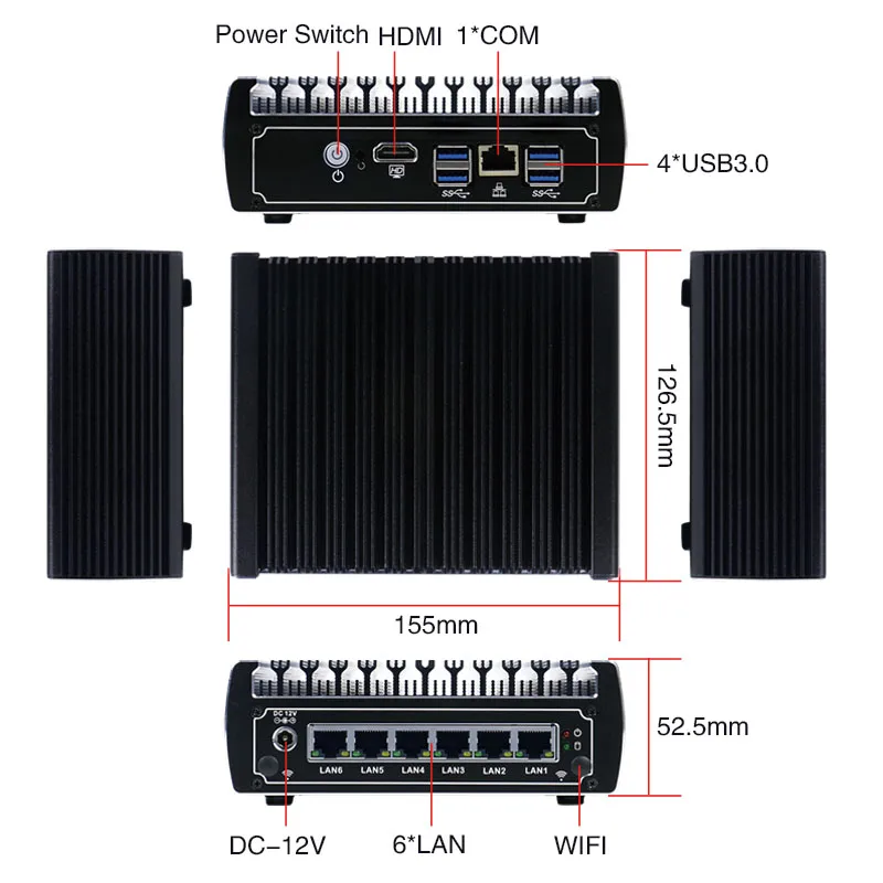 3,1 * HDMI +4 * USB3.0+6 * intel LAN+ 1 * RJ45 COM(Поддержка консоли) + 1 * Выключатель питания;