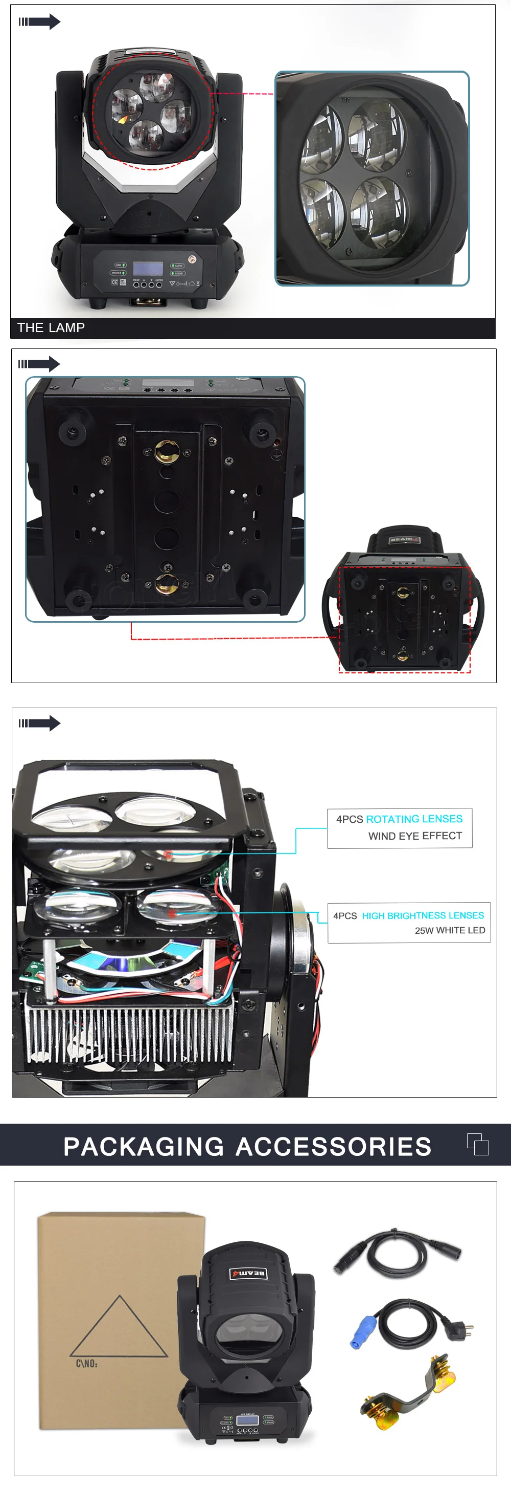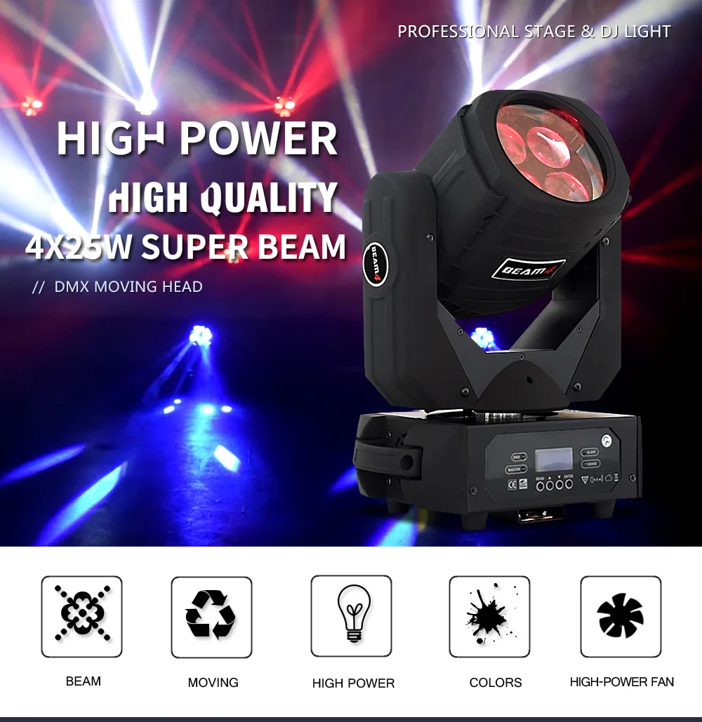 Подвижный светодиодный светильник DMX512 с супер-лучом, вращающаяся линза, мини-пчелиные глаза для диджея, бара, диско, светильник, 4 х25 Вт