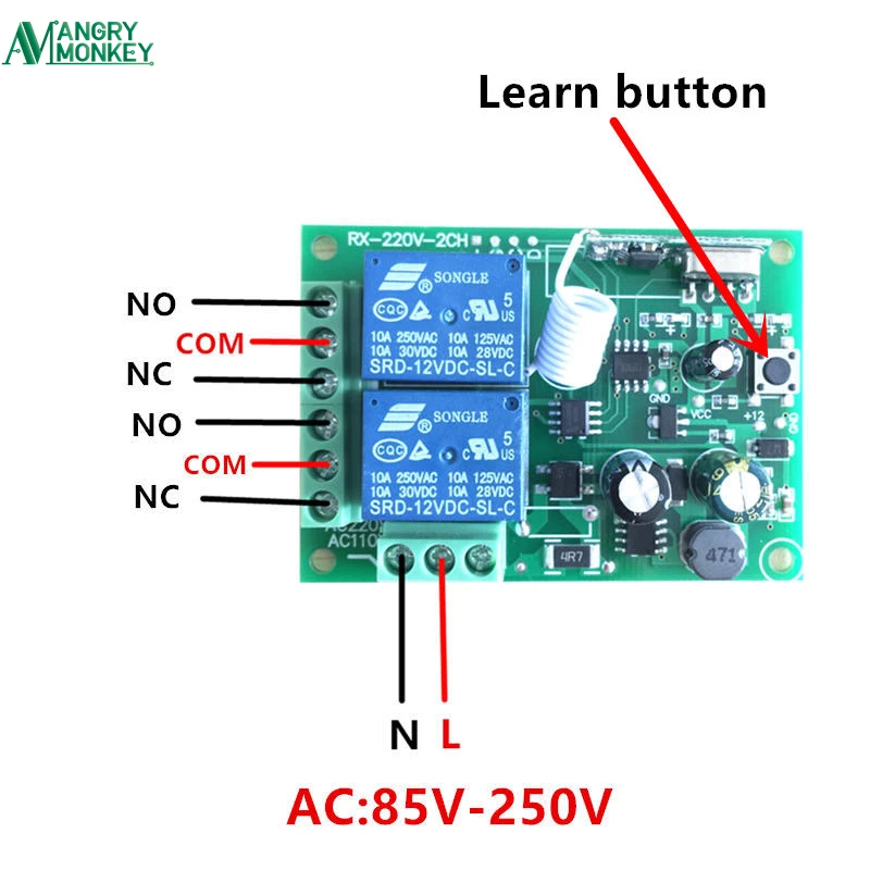 Нажмите кнопку дистанционного управления, реле активируется, отпустите кнопку дистанционного управления, реле деактивирует.