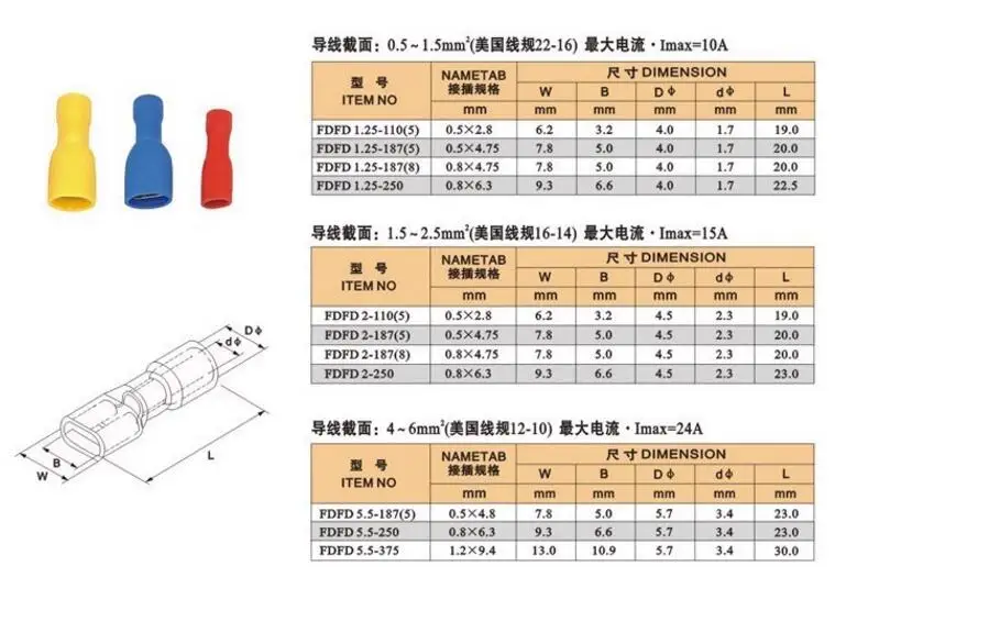 Faston FDFD2-250 25 синий + 25 красный 6,3 мм изолированный штыревой соединитель проводного Кабеля