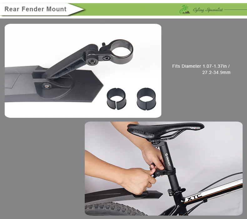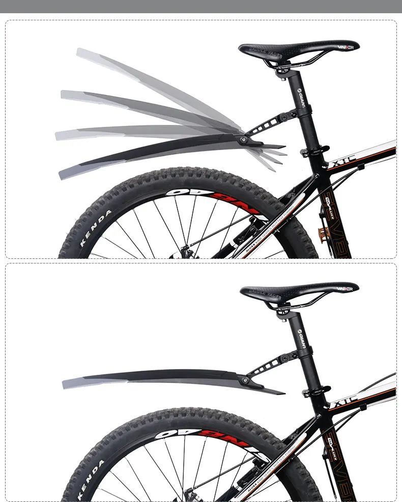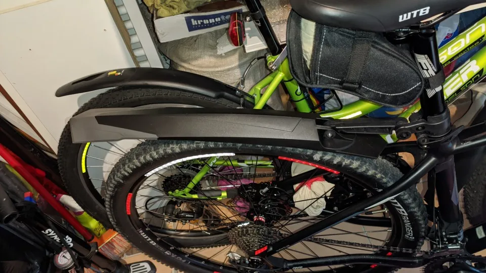 пришло очень быстро. отдельное спасибо курьеру. крылья выглядят неплохо, в деле ещё не проверял. крепление для заднего положили огромное, у меня оно даже раму обнять не может, не то что на подседельный штырь.