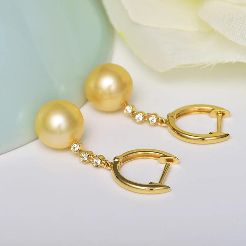[YS] серьги в классическом стиле 10-11 мм, круглые серьги из желтого золота 18 К с жемчугом южного моря