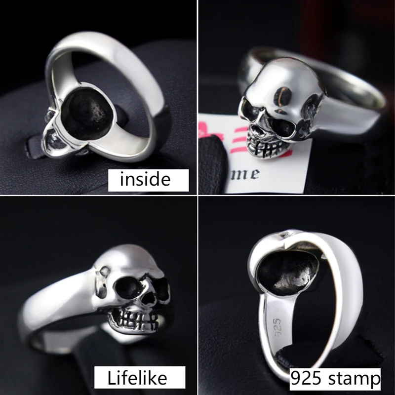 Zabra Настоящее стерлингового серебра 925 Панк Skull Ring Для мужчин Винтаж Кольца для Для мужчин Для женщин любителей модные ювелирные изделия anillos де плата 925