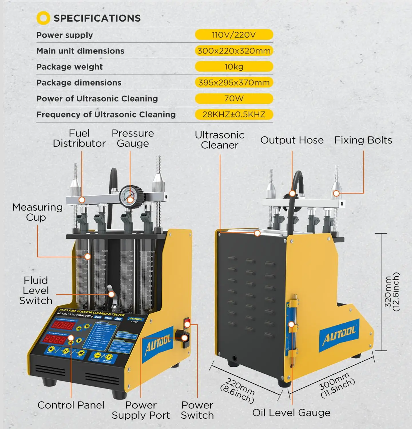 Тестер топливной форсунки автомобиля AUTOOL CT150, 4 цилиндра