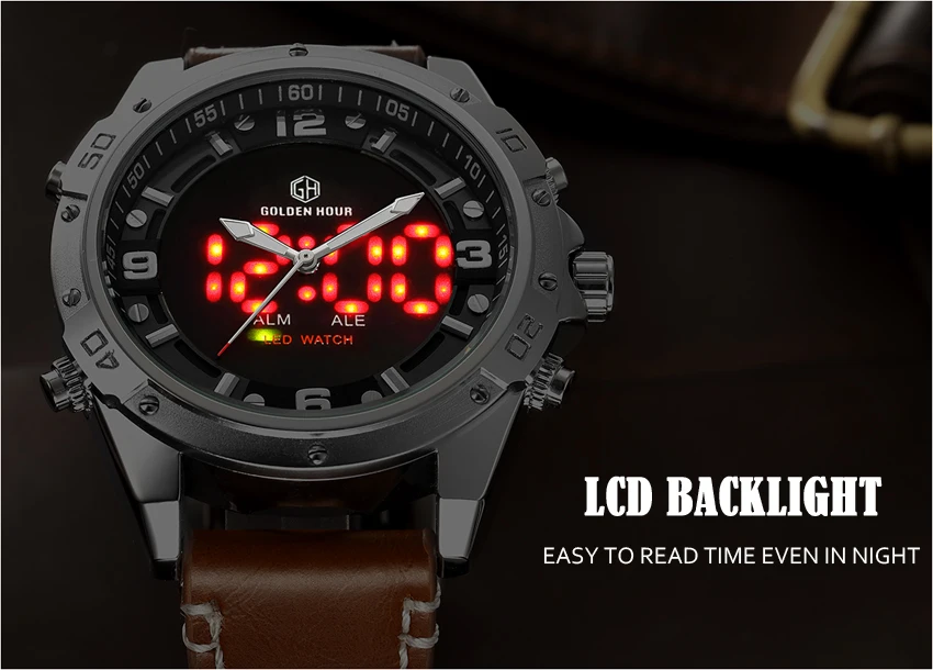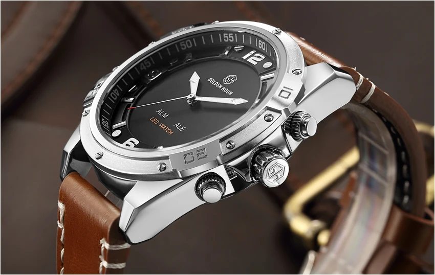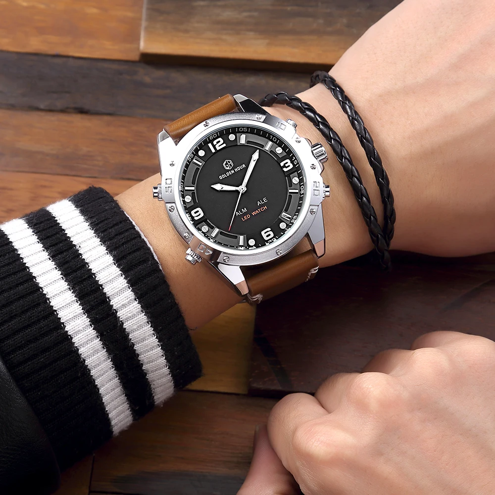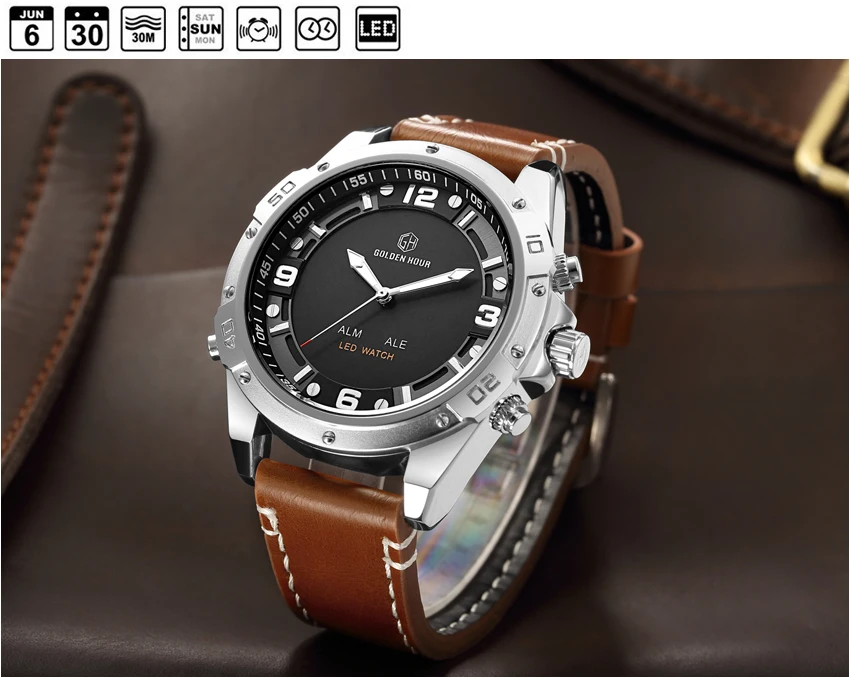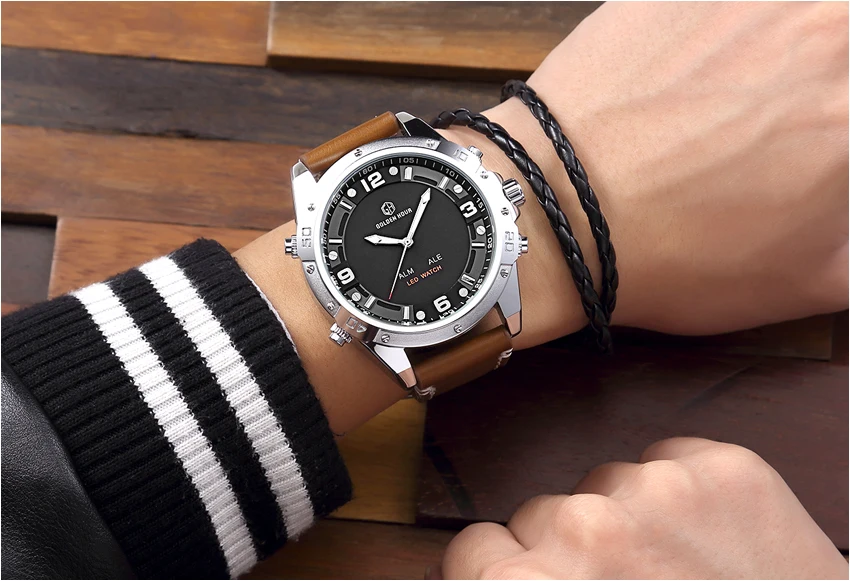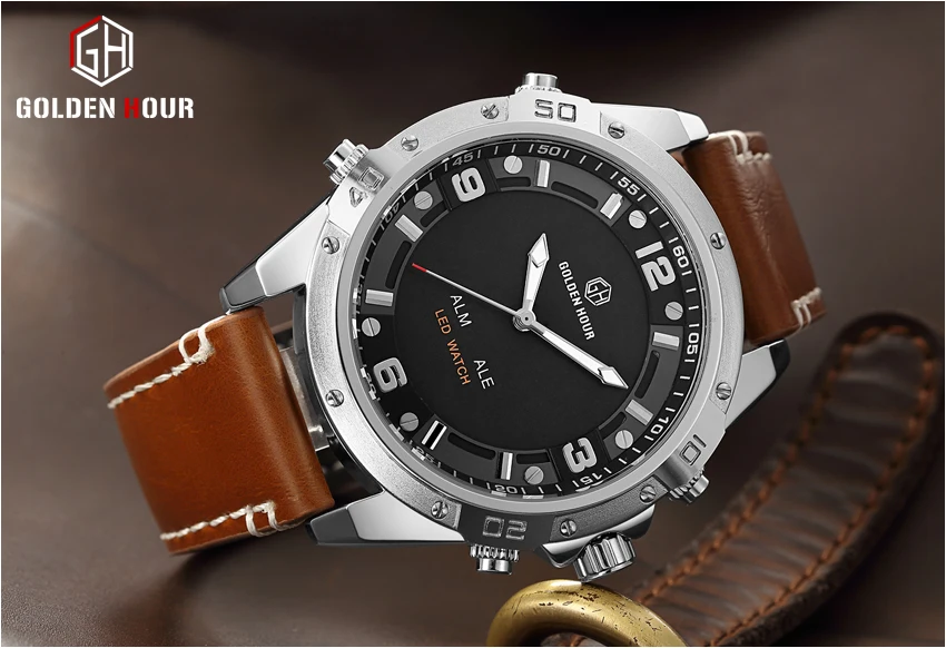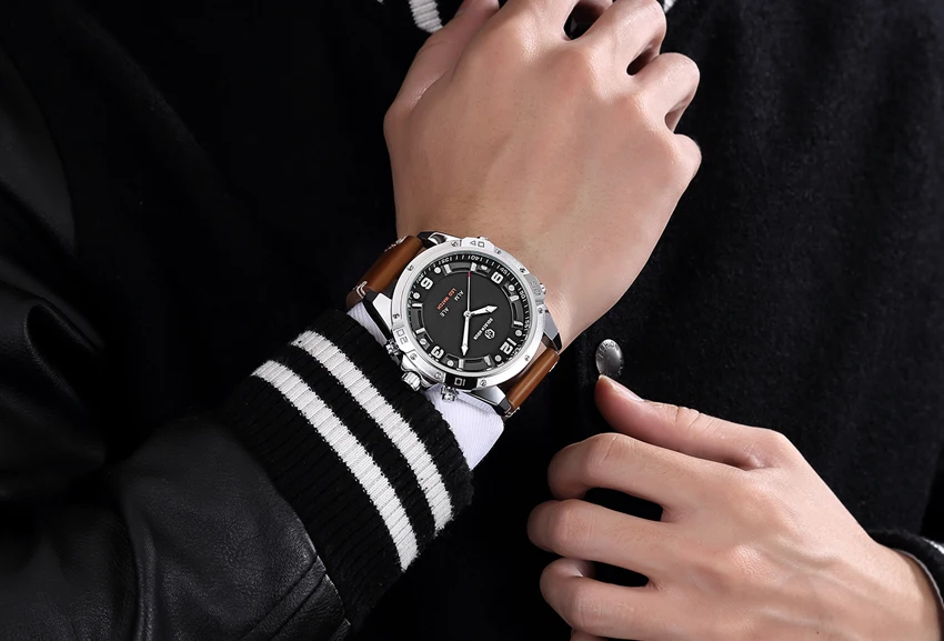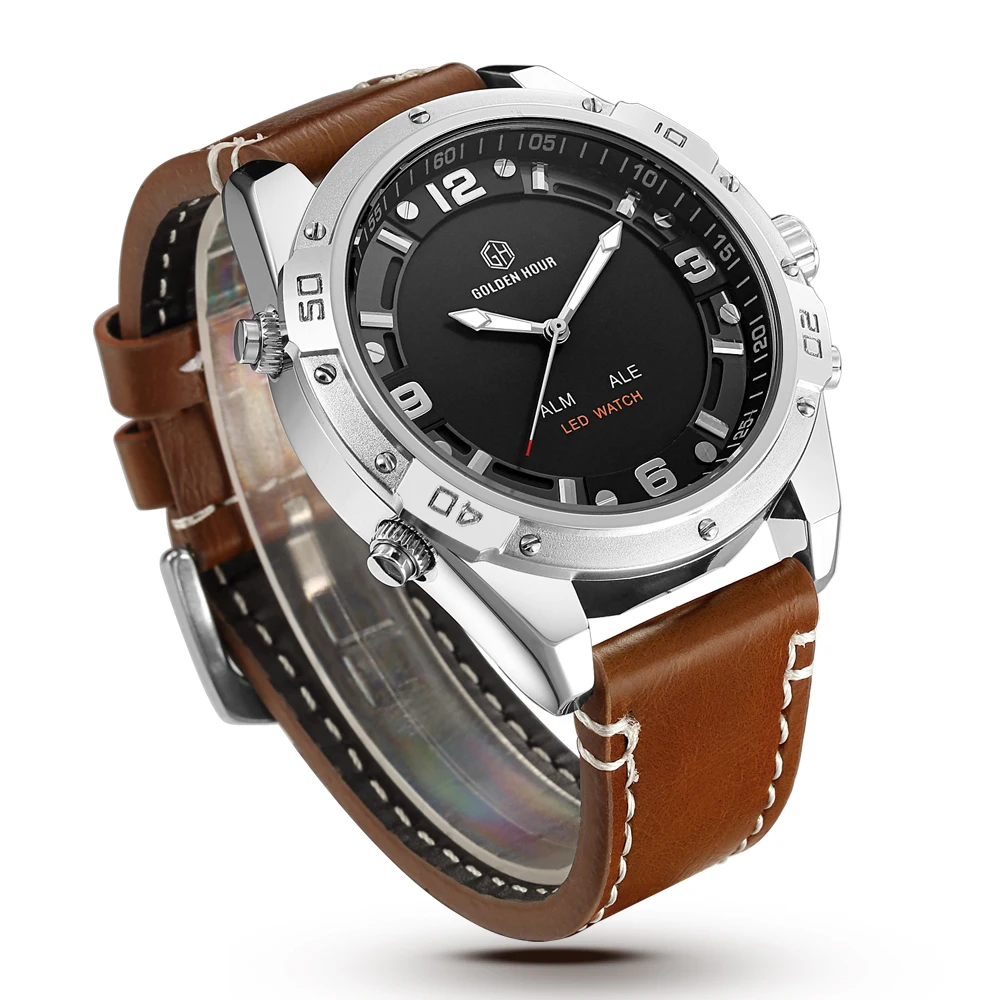 Часы мужские кварцевые аналоговые, водонепроницаемые, с кожаным ремешком