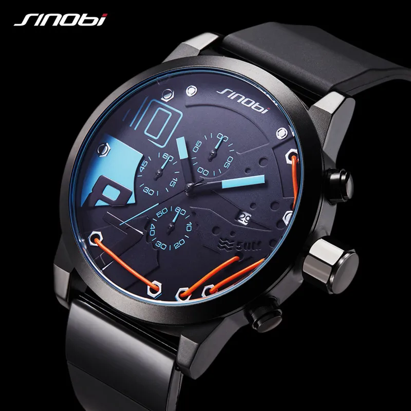 Часы наручные SINOBI Мужские кварцевые, брендовые Роскошные спортивные водонепроницаемые Модные Повседневные