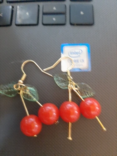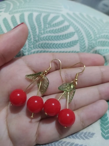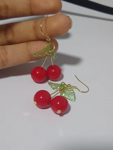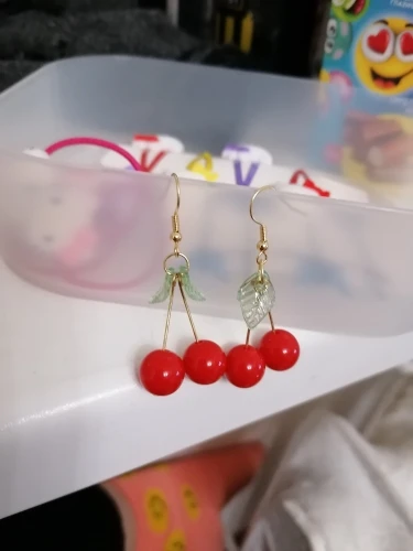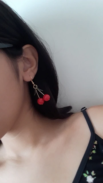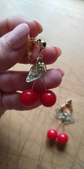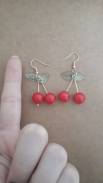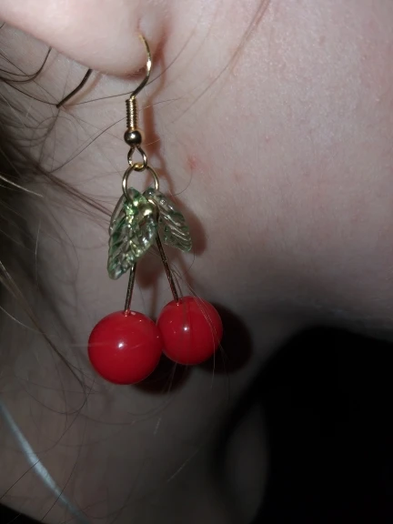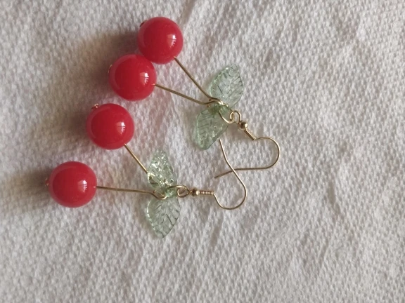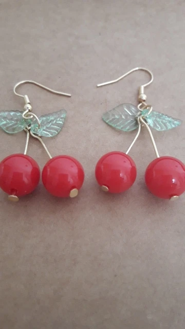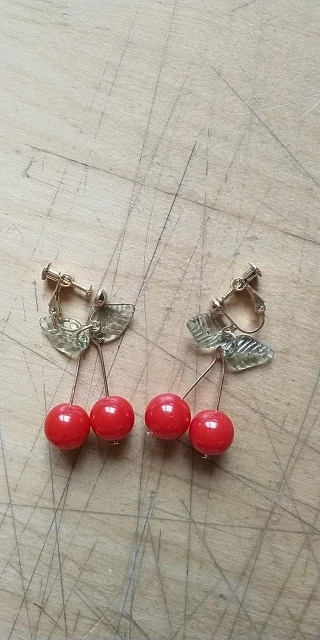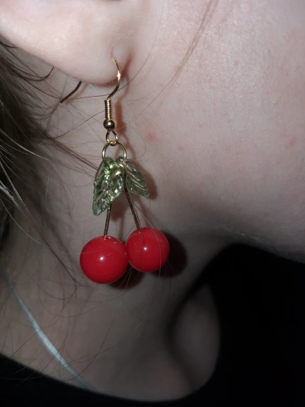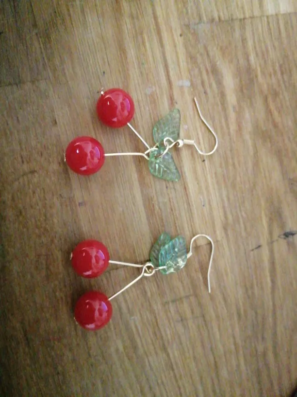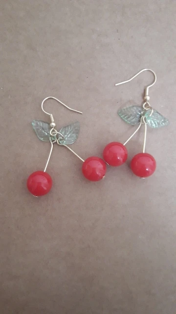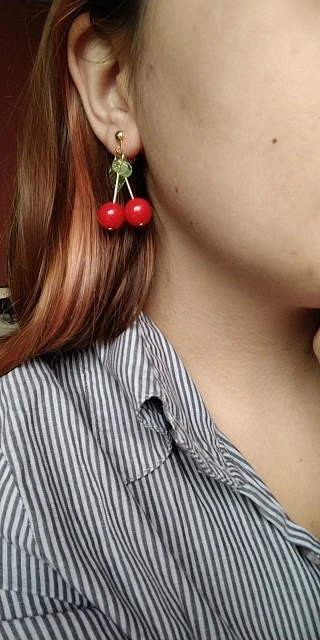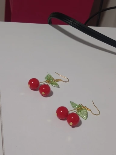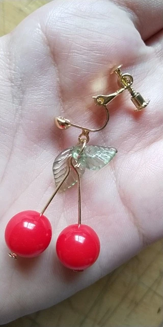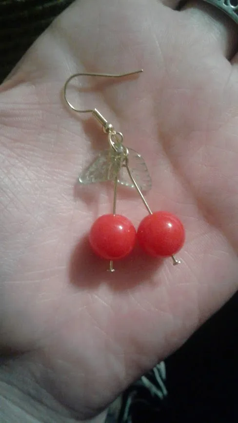 Они сделаны из более «стойкого» материала, но они все еще не весят и не очень удобны в носке. Но вишни не крепятся друг к другу или к металлическому стержню, что позволяет забавно двигаться по наклону, и они выглядят очень молодо. Они именно те, что на фото, и они получили здесь довольно быстро. Моя версия-это зажим, и они красиво закрывается и настраивается.