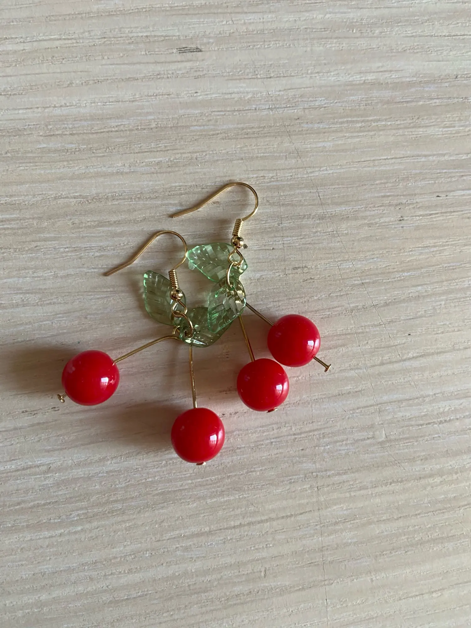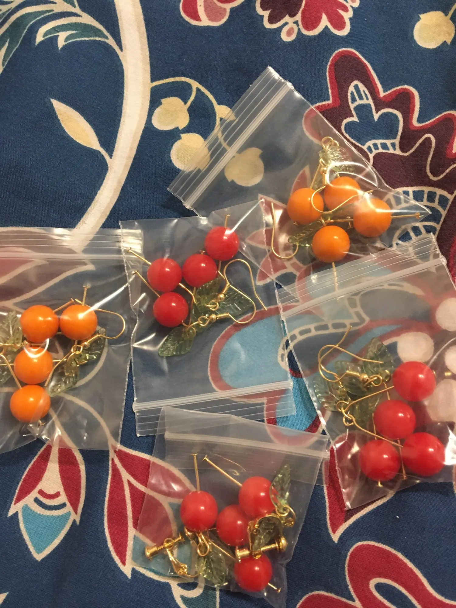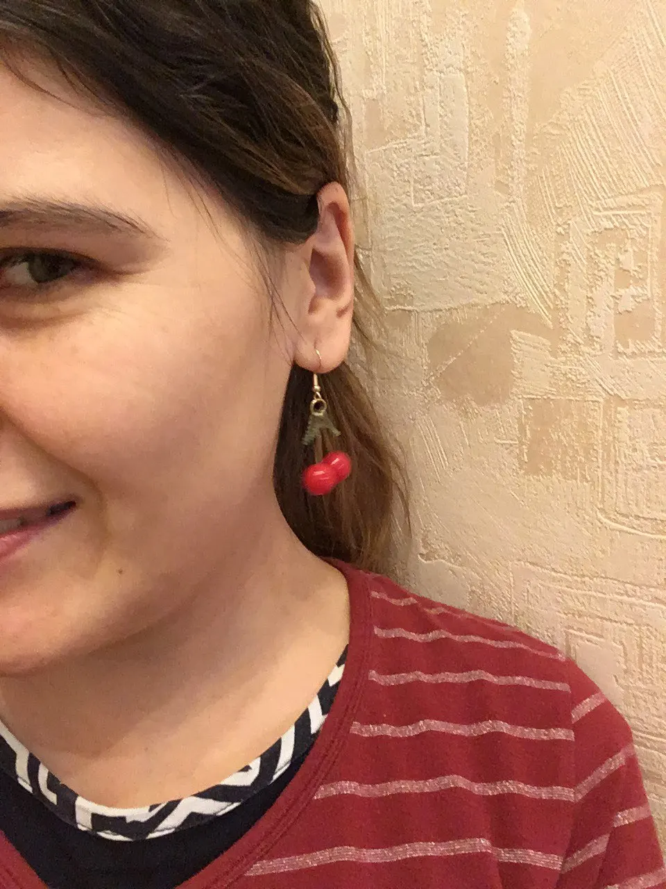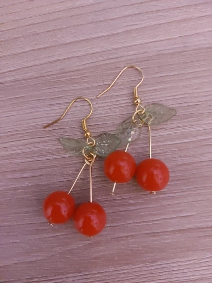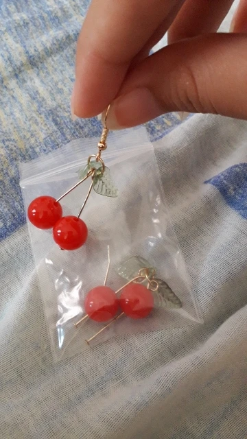 Они сделаны из более «стойкого» материала, но они все еще не весят и не очень удобны в носке. Но вишни не крепятся друг к другу или к металлическому стержню, что позволяет забавно двигаться по наклону, и они выглядят очень молодо. Они именно те, что на фото, и они получили здесь довольно быстро. Моя версия-это зажим, и они красиво закрывается и настраивается.