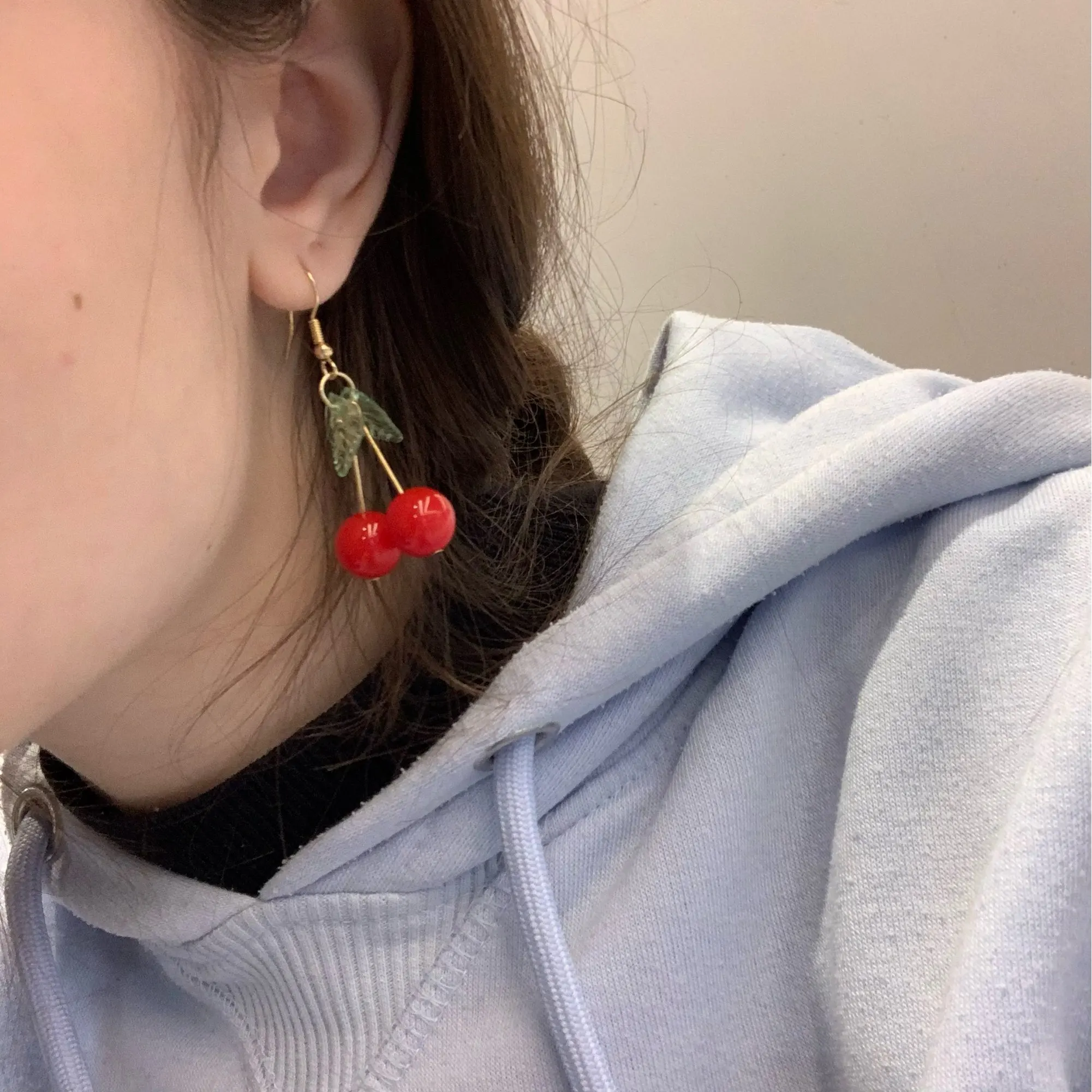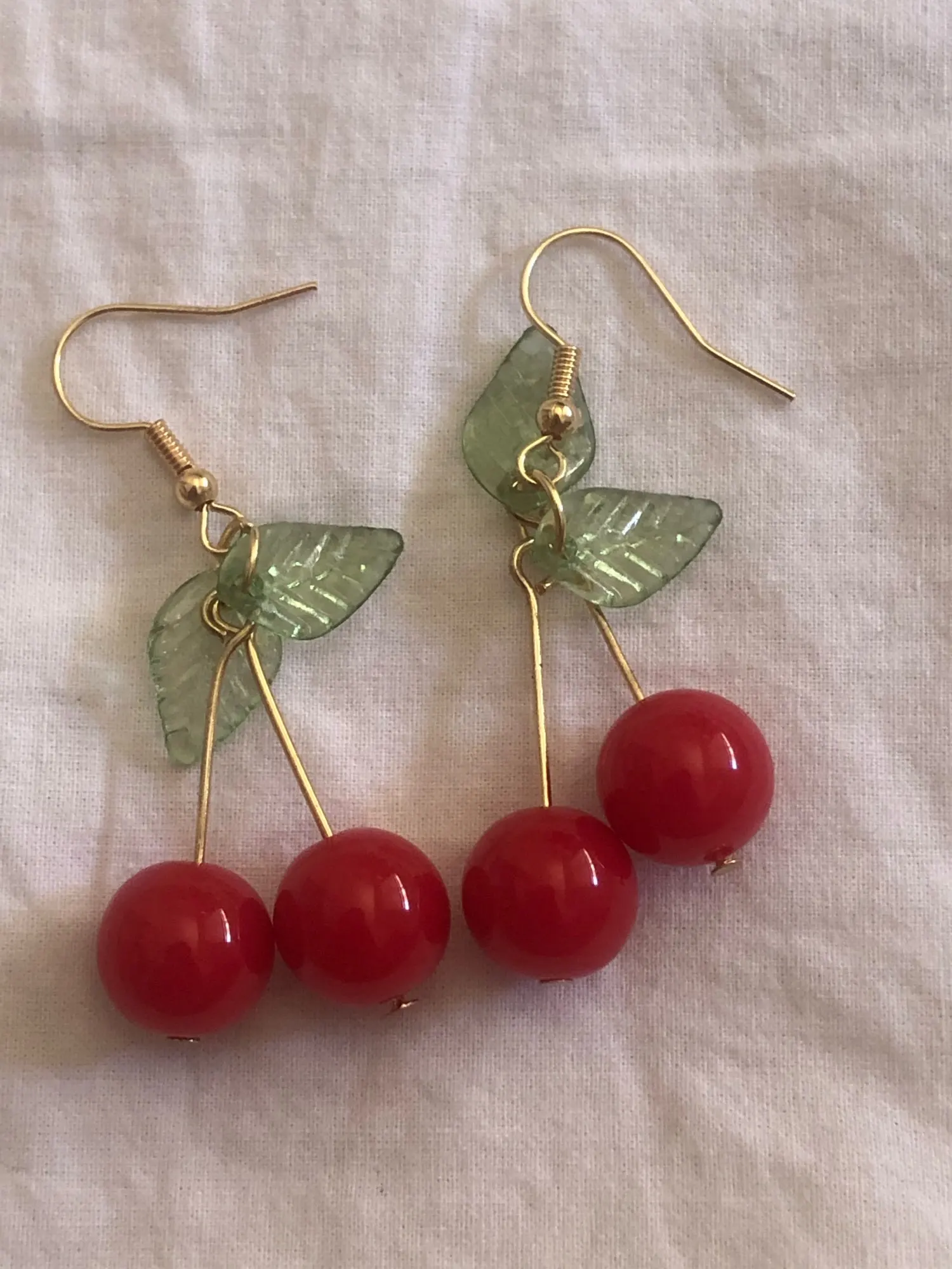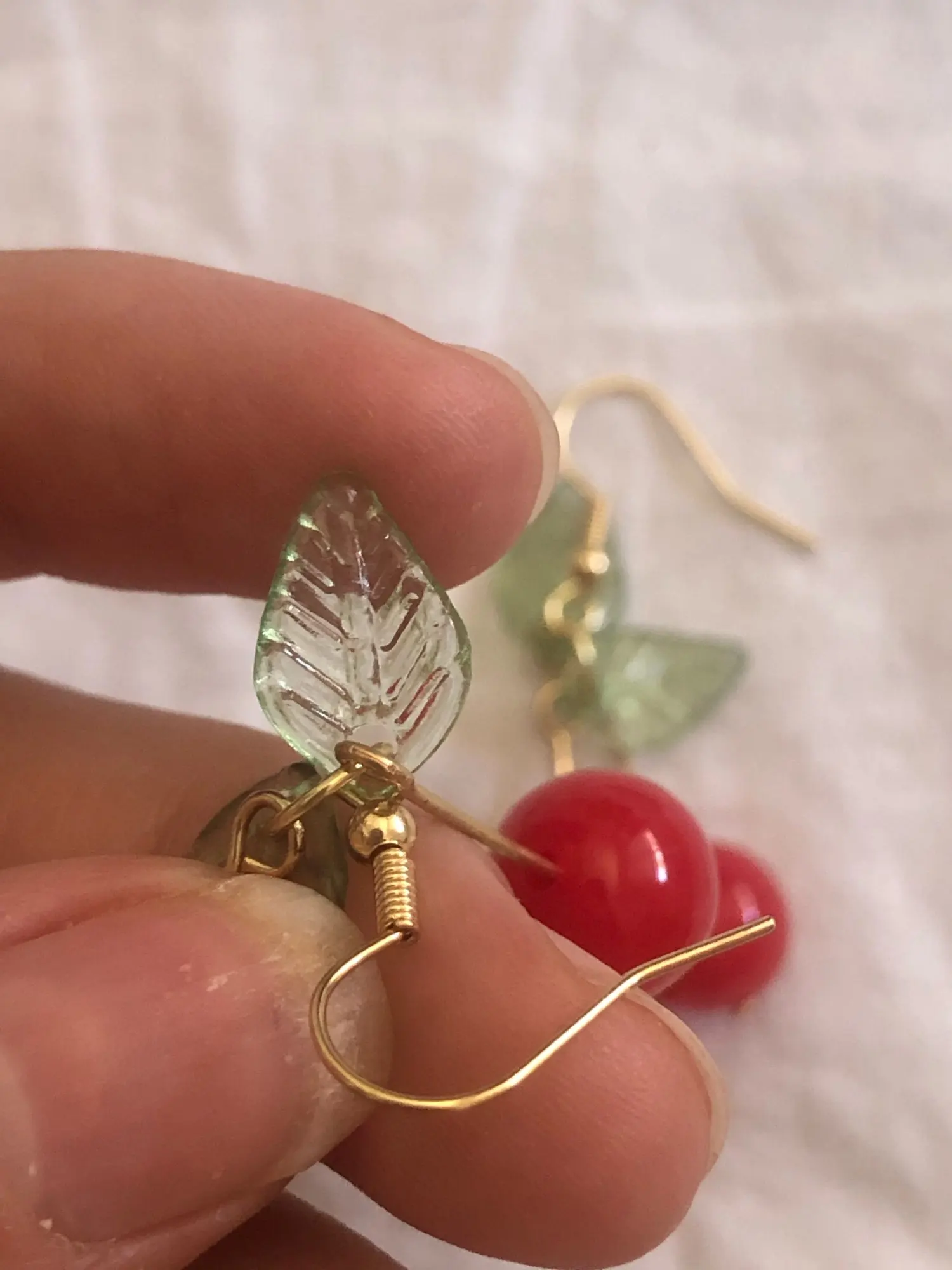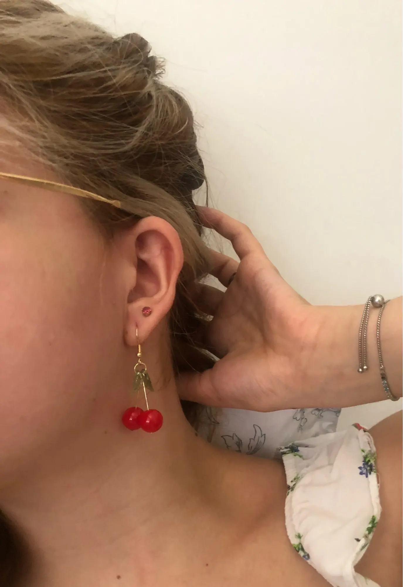 Они сделаны из более «стойкого» материала, но они все еще не весят и не очень удобны в носке. Но вишни не крепятся друг к другу или к металлическому стержню, что позволяет забавно двигаться по наклону, и они выглядят очень молодо. Они именно те, что на фото, и они получили здесь довольно быстро. Моя версия-это зажим, и они красиво закрывается и настраивается.