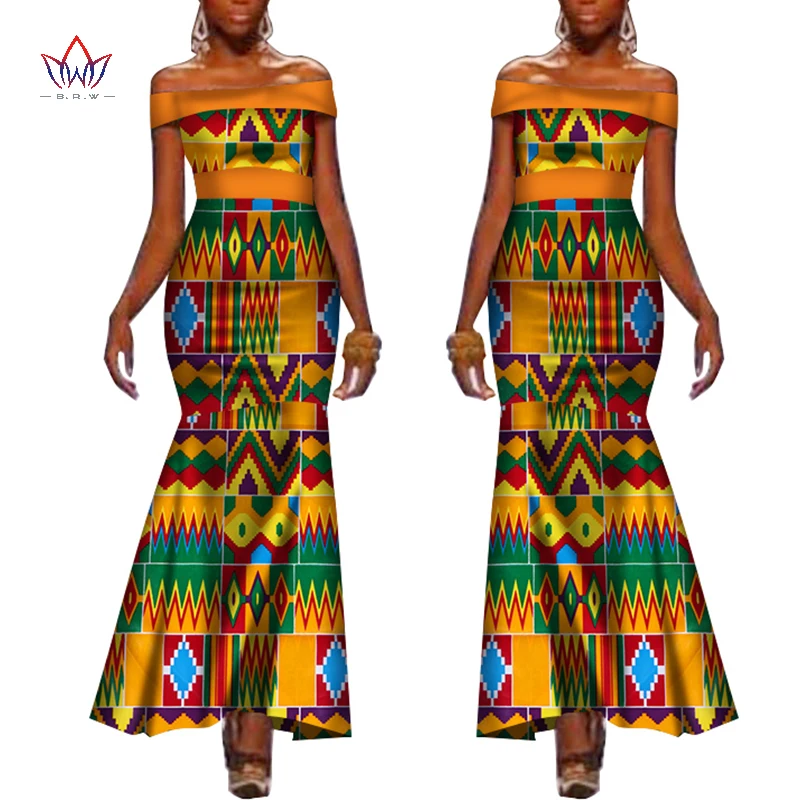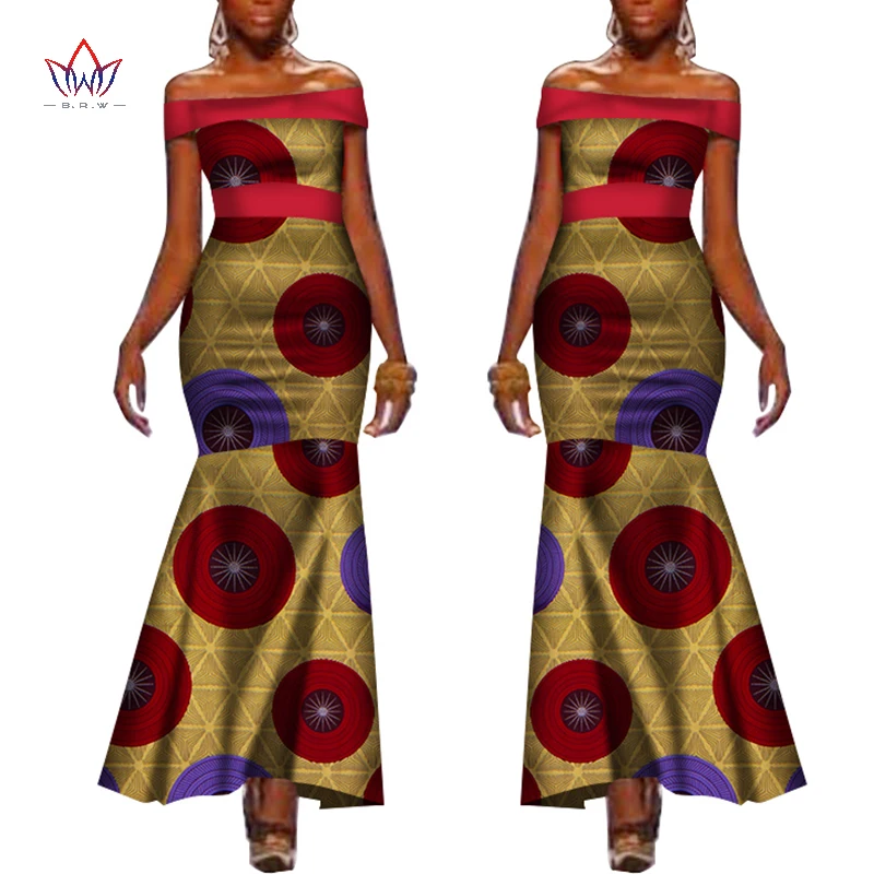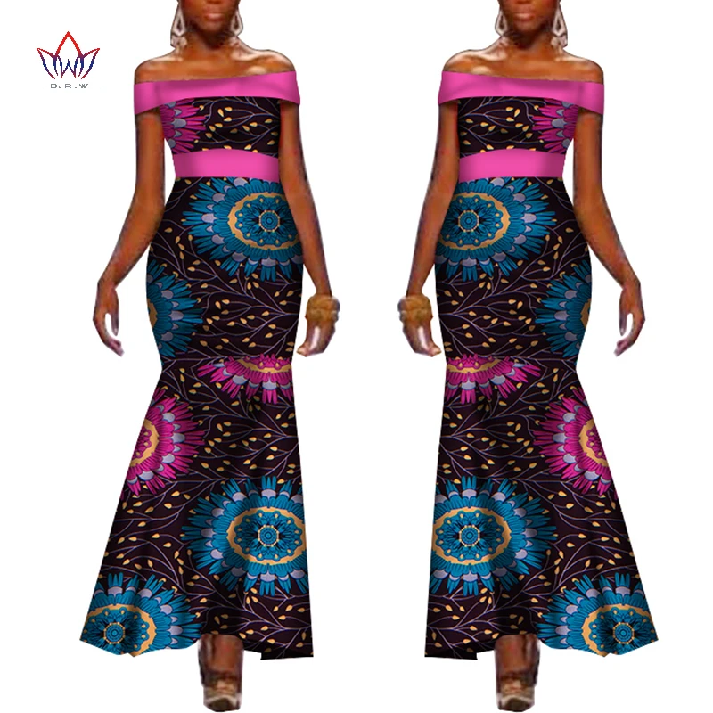 Новинка 2021, летние африканские платья для женщин, Бандажное платье однотонного цвета из Анкары, Платье макси с вощеным принтом и открытыми плечами WY1891