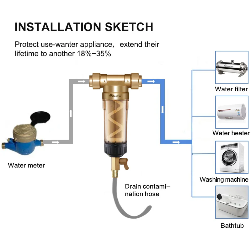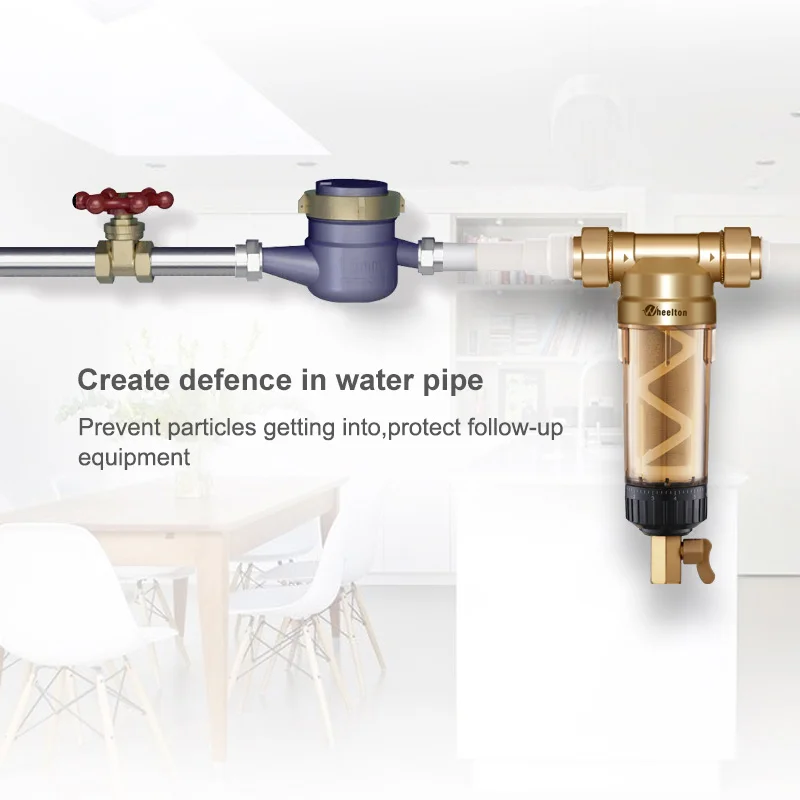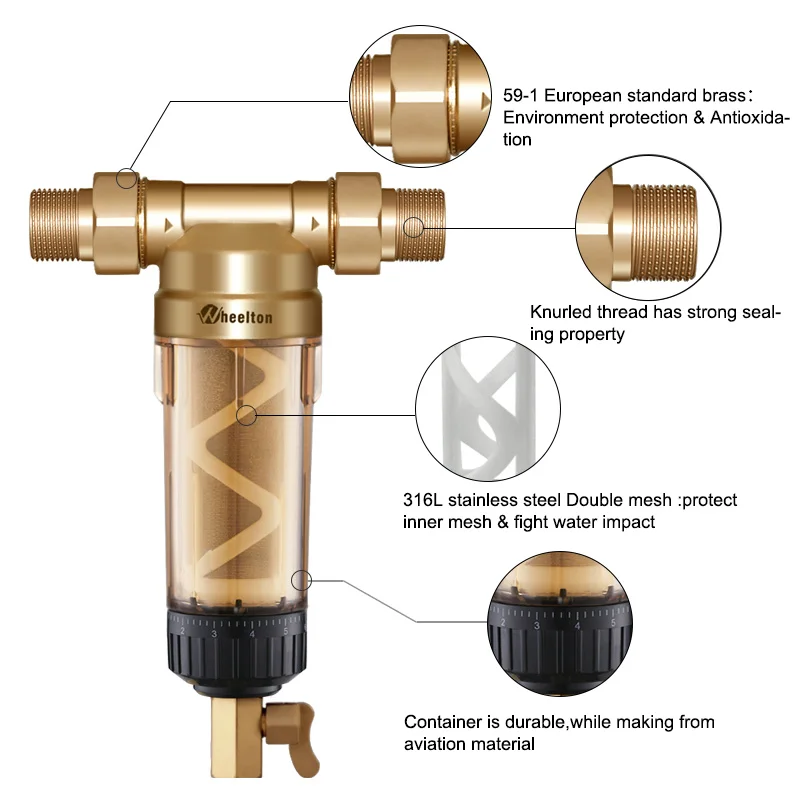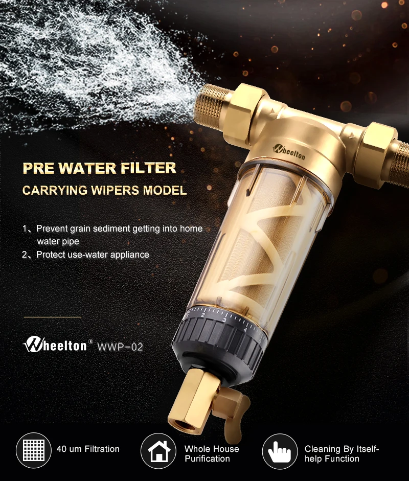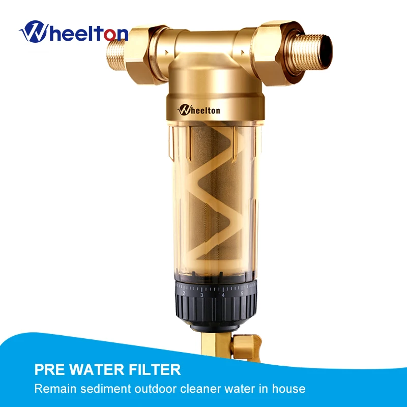Предварительный фильтр для воды Wheelton (WWP-02S) с двумя дворниками, евро-стандарт, латунь, 30 лет, очиститель Lifitime, весь дом 12 "и 34" и 1"