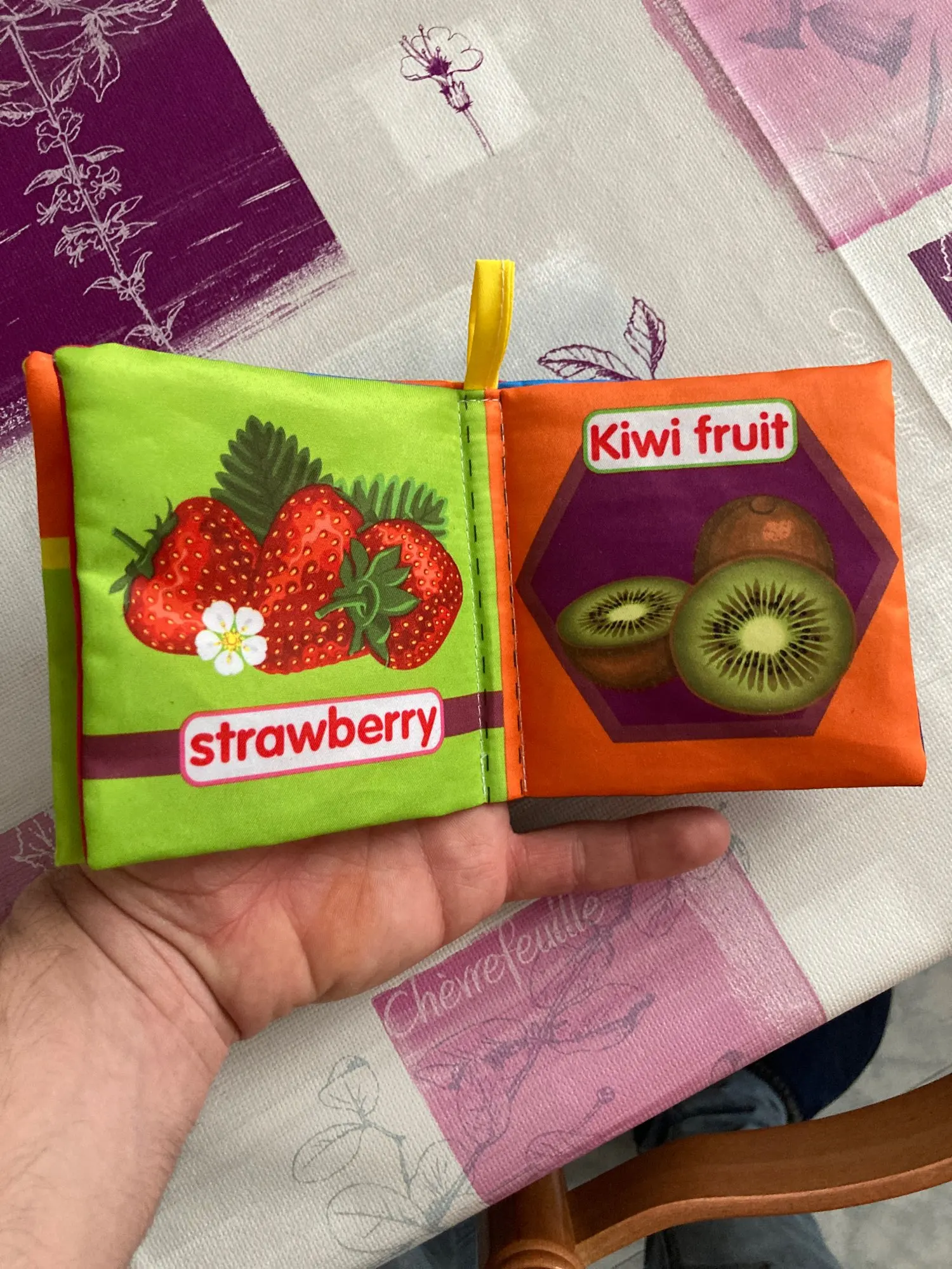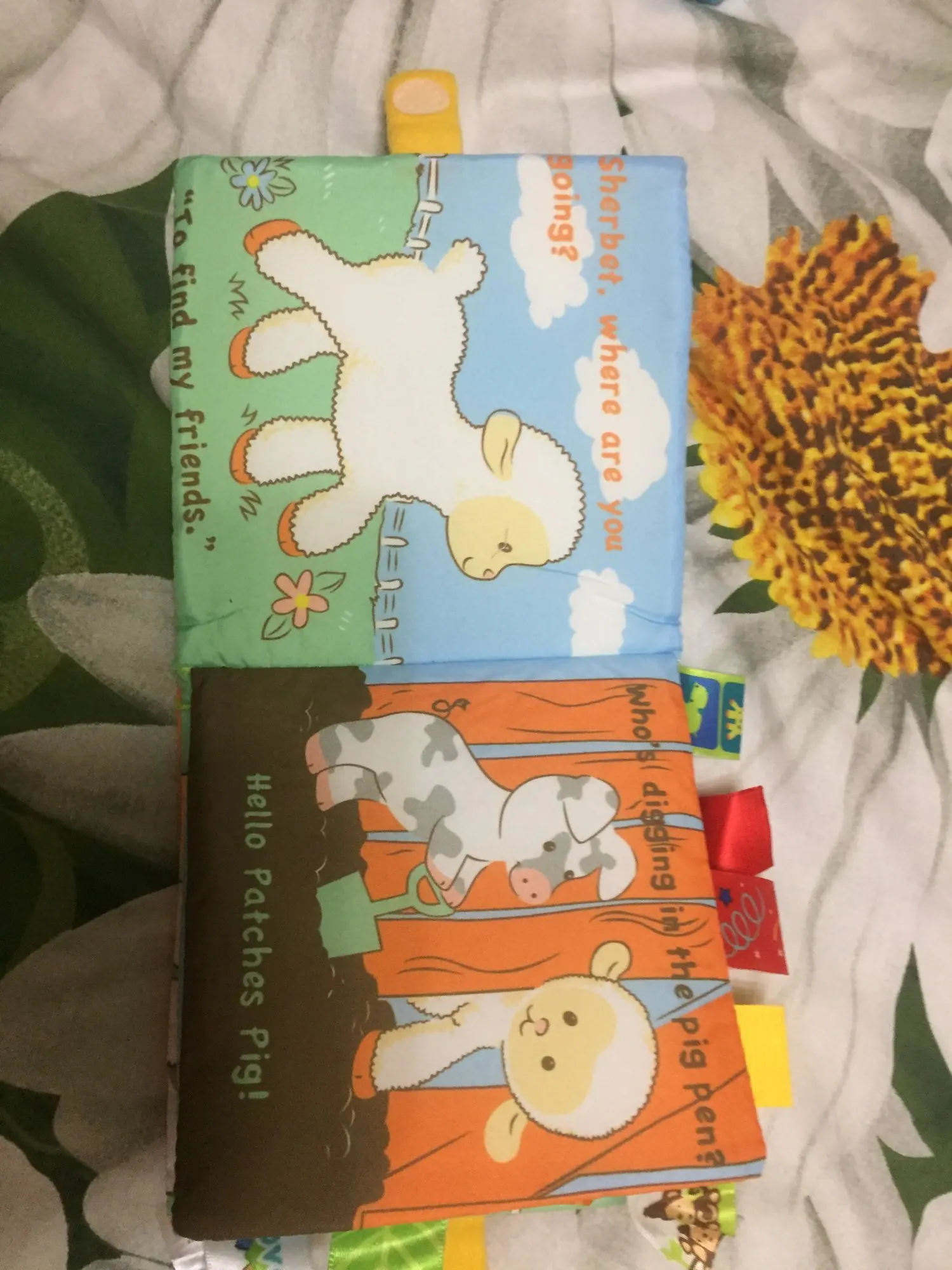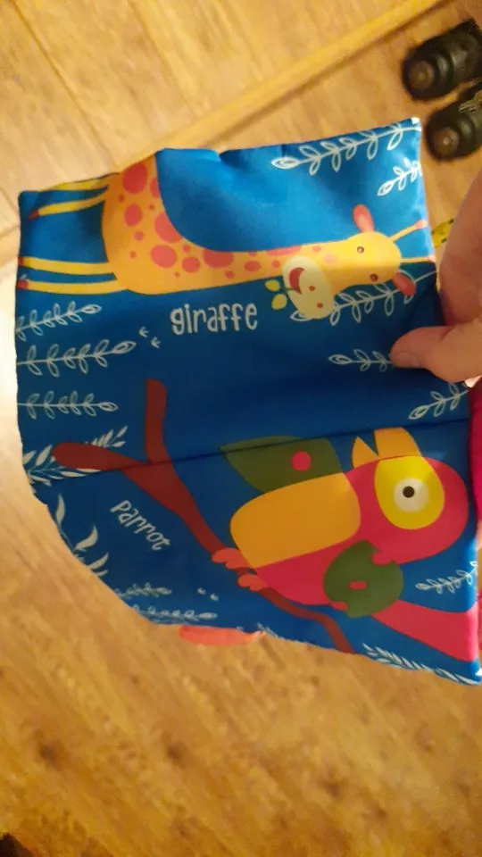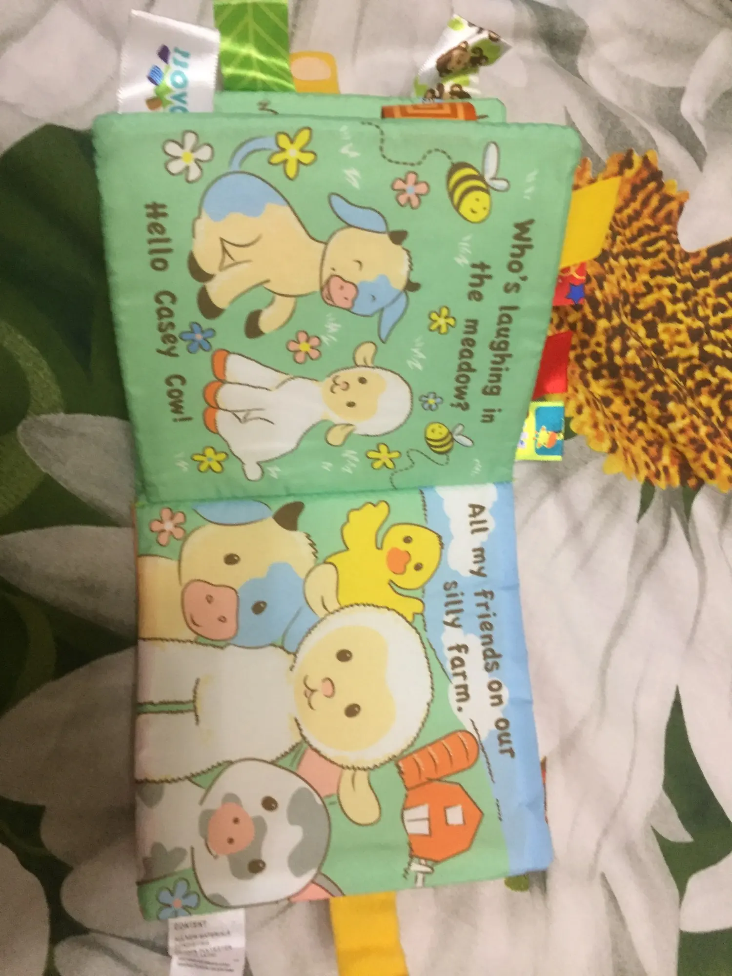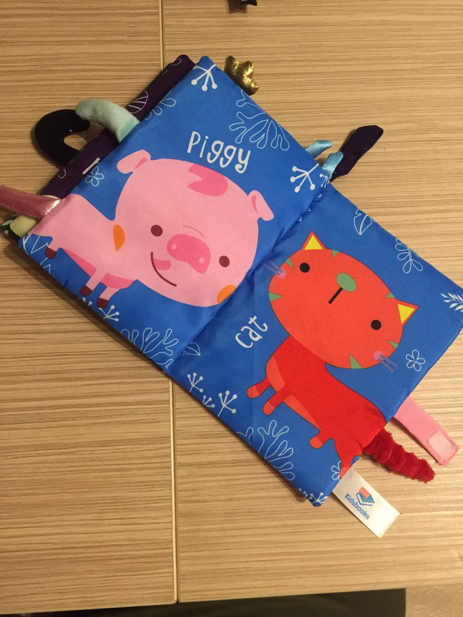 В Беларусь пришли за месяц. 4 шуршащих листа с яркими животными и предметами разных цветов и подписями на английском языке. ткань скользящая, принты устойчивые к воде, поэтому ребенок с этими книжками даже может принимать ванну.