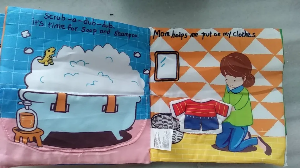 мягкая книжка состоит из 4 листов (7 страничек). внутри страничек поролон. все нашивные детальки (стульчак, памперс, дверь, туалетная бумага, мойка) шуршат. куколка внутри набита синтепоном, отстегивается, можно играть с ней отдельно. с книжкой можно купаться. можно стирать. краски стойкие. иллюстрации яркие. все надписи на английском языке. книжка с ярлычком и биркой. быстрая доставка до Санкт-Петербурга, несмотря на новогодние праздники