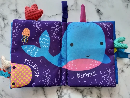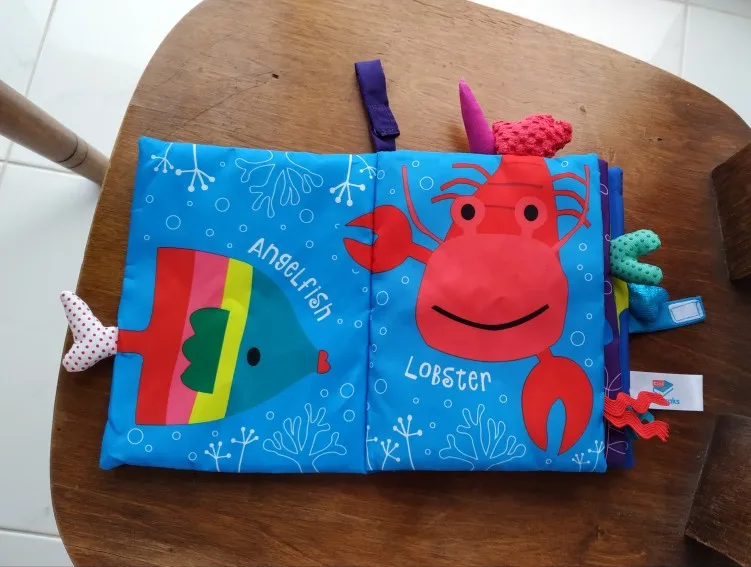 Прекрасная книжонка) Конечно, хотелось бы больше содержимого внутри и может быть чтобы можно было на что-нибудь нажать, пищалки и так далее, но за свою цену вполне себе приличный вариант) Яркая, прошита качественно, фото , заказывайте, не пожалеете! Доставка быстрая, недели за 2 привезли. Внутри разнообразные морские гады на английском языке, тут вам и когнитивные навыки и английский заодно. Супер!