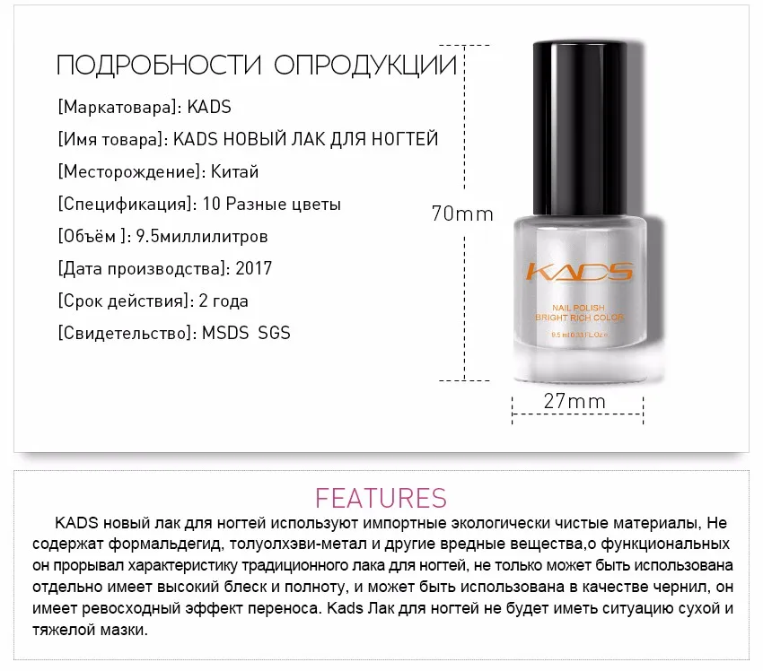 Kads 9.5 мл два в одном лак для ногтей и штамп польский Металл 10 видов цветов дополнительно штамповка лак для ногтей Art