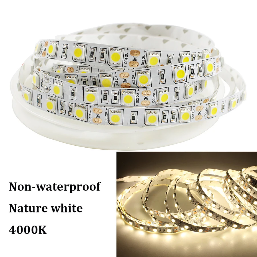 Светодиодная лента 5050, 5 м, 300 светодиодов, гибкая, водонепроницаемая, IP65, уличная декоративная подсветка, 4000 к