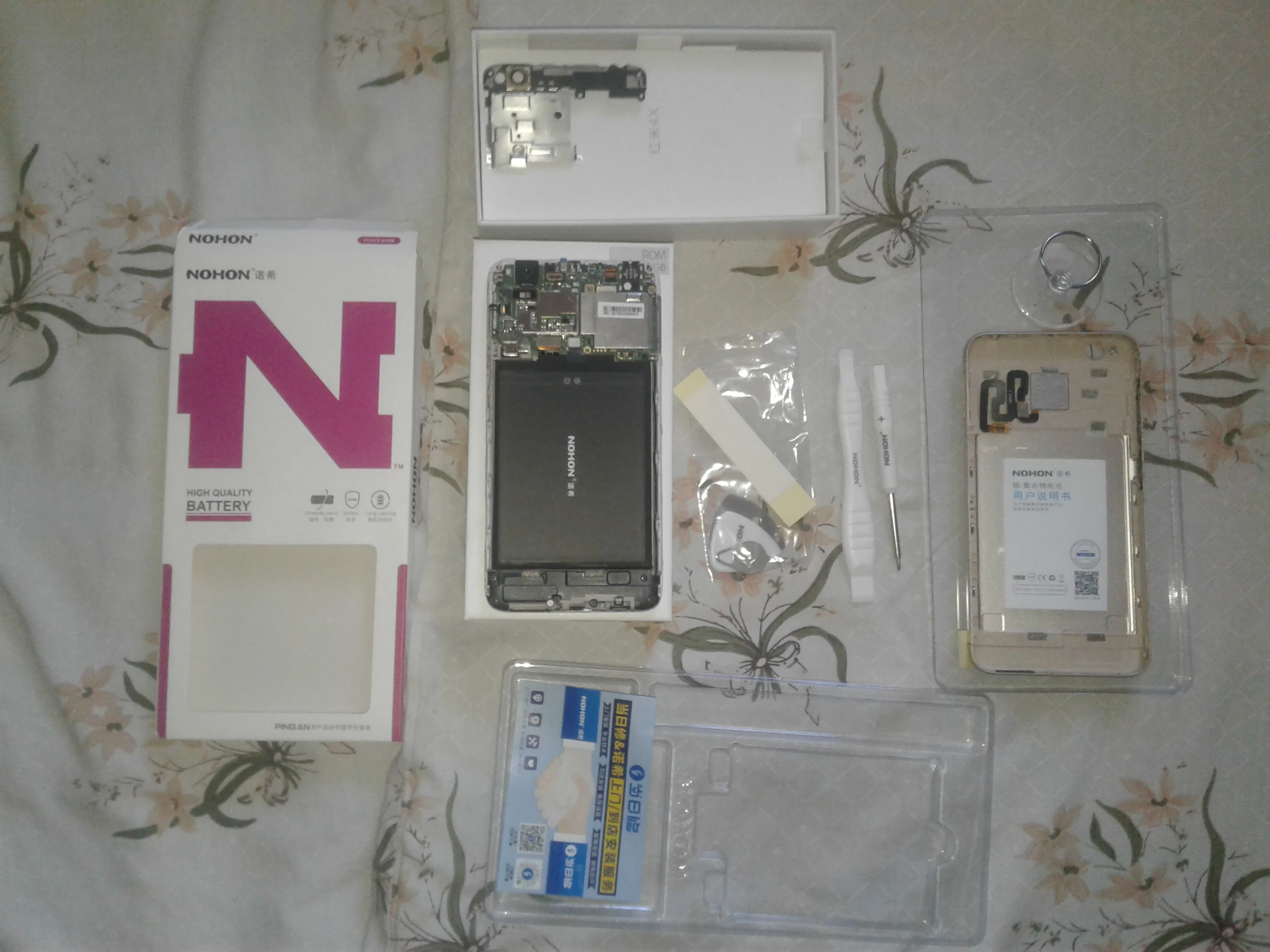 All inclusive - комплектация. В коробке помимо батареи две нужные намагниченные отвёртки (звёздочка для наружных торцевых винтов и крест для всего нутра), медиатор, двусторонний скотч и ещё дополнительные ненужные приспособы, типа присоски. Заказал батарейку для mi5s (с синей наклейкой), пришла, напряжение на хвосте нормальное, а телефон с ней не заряжается, хотя напряжение норм, описал проблему продавцу, тот попросил видео, сделал, продавец отправил его на завод, в итоге мне отправили другую новую батарейку, попросив сделать новый заказ и снизив цену до 0,01$. Вторую доставили очень быстро причём курьерской службой до двери. На этот раз батарея с черной наклейкой оказалась годной, комплектация тоже изменилась, теперь вместо синей открывашки из мягкой пластмассы - более массивная и красивая белая (ни той, не другой я не пользовался - из защёлок телефон свободно выходит медиатором или ногтем), но приятно. NOHON - очень приличная контора, делающая качественные батарейки. Рекомендую.