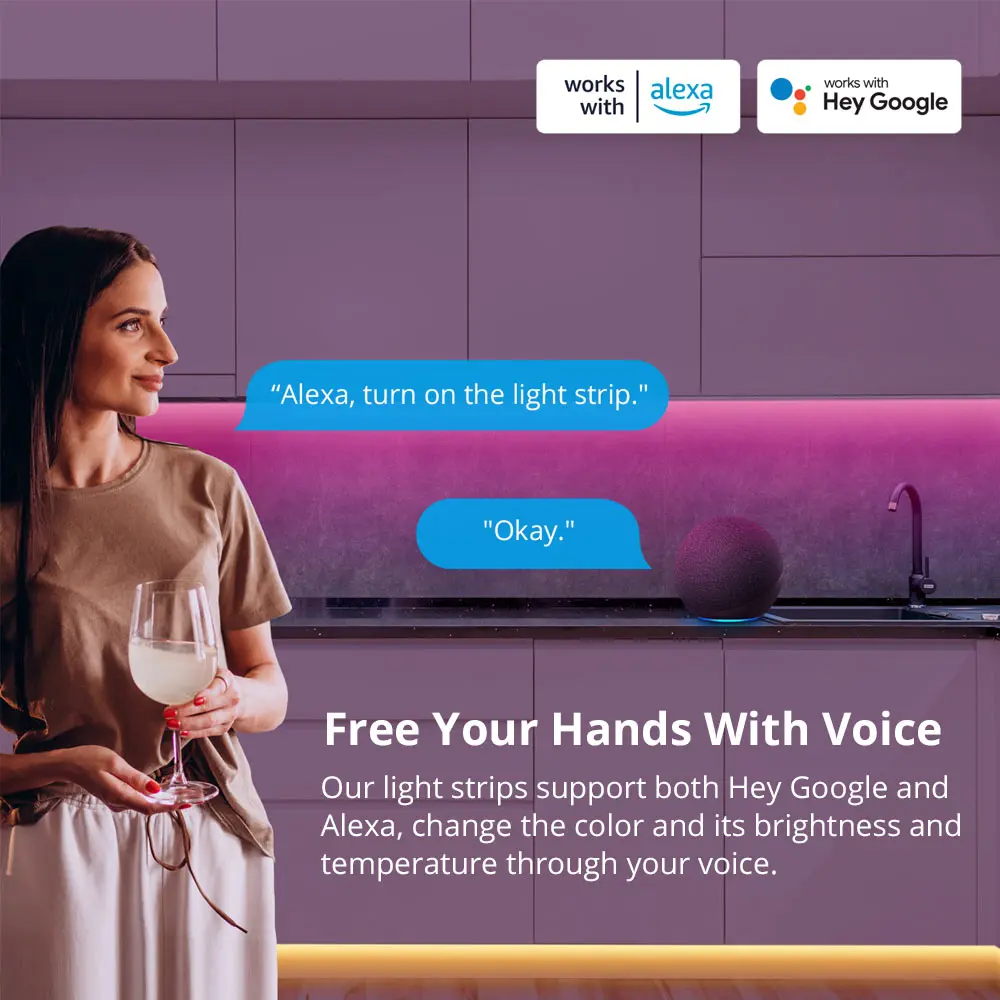 [Голосовое управление] Наши полосы L2 lite поддерживают как Google, так и Alexa, изменяют цвет и его яркость и температуру через ваш голос.