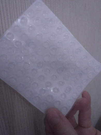 Посылка получена с ней все в порядке. Покупку у этого Продавца рекомендую. Накладки держаться отлично на любой поверхности и хорошо уменьшают стук ручек об стену.