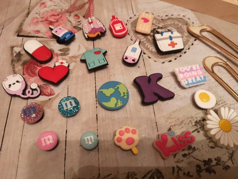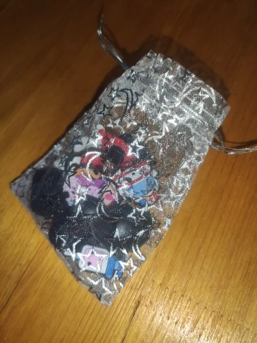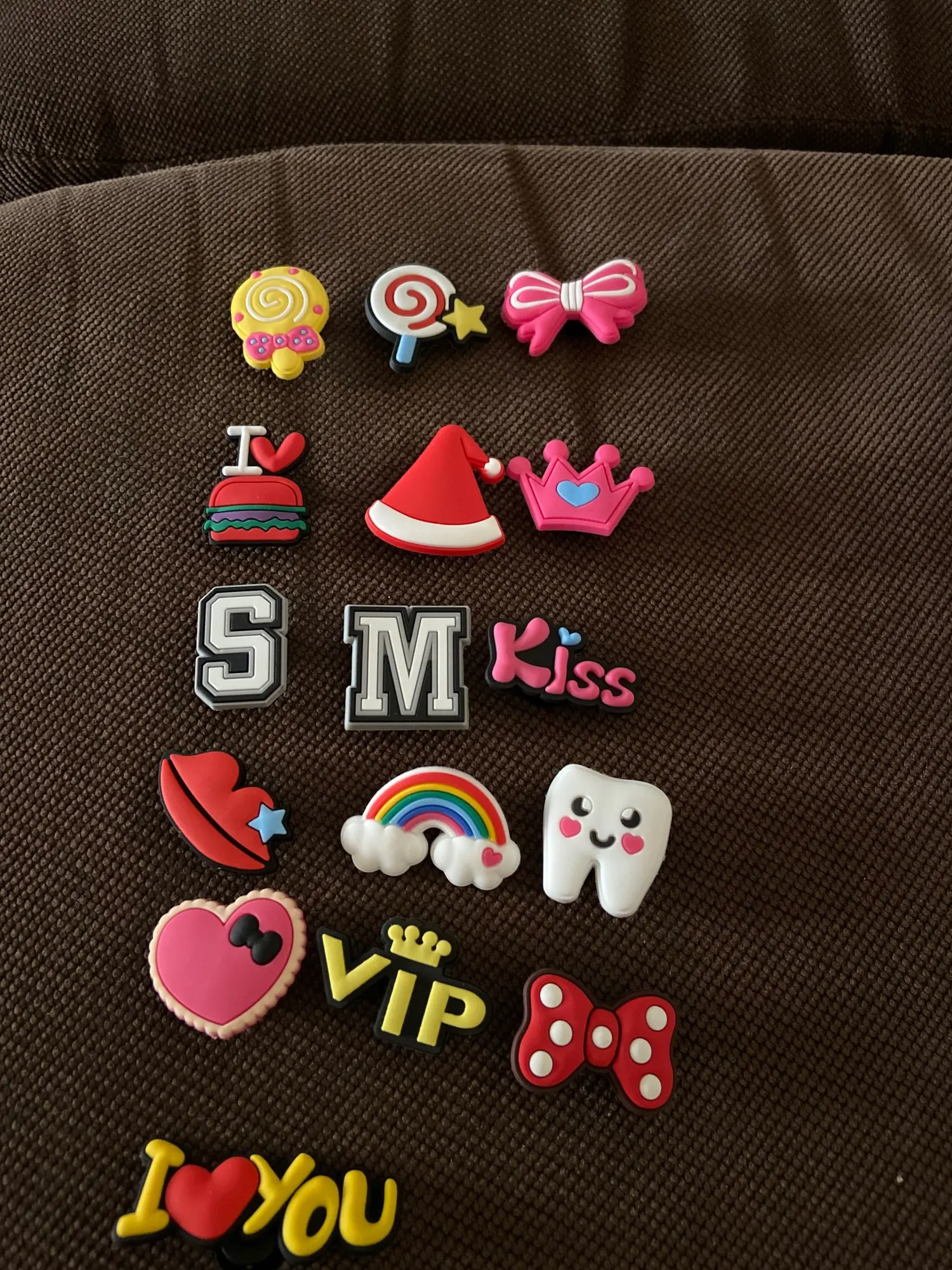 Стикеры пришли в красивом мешочке, за 2 недели. Обязательно берите большой набор, не пожалеете. У меня 14 шт., и понимаю, что если бы взяла маленький набор, то докупила бы остальные. Они в точности, как на фото. Качество отличное, без повреждений. Закрепка сзади пластиковая. Спасибо продавцу. Покупайте на радость.