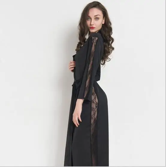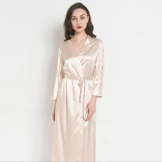 Халат женский Шелковый с длинным рукавом, пикантная одежда для сна, банный халат, весна-осень