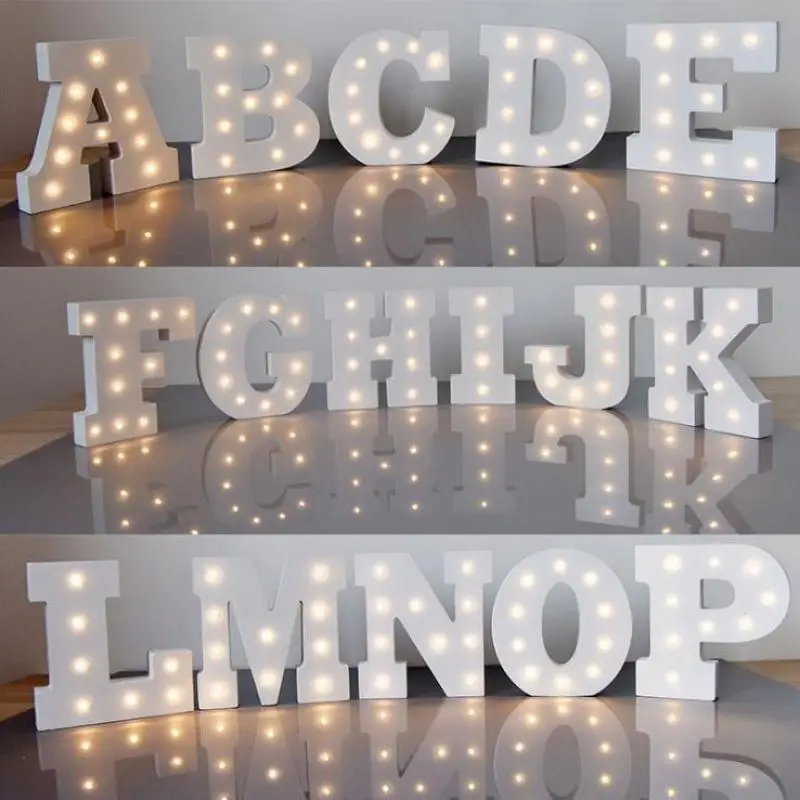 Деревянные Буквы A B C, светодиодный Ночной светильник, алфавит, Marquee, знак, светильник, свадебное окно, дисплей, вечерние принадлежности, домашний декор, Детская лампа