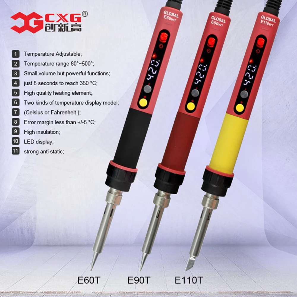 Электрический паяльник CXG E90W, регулируемый Электрический паяльник с термостатом с ЖК дисплеем и канифолью, с европейской вилкой