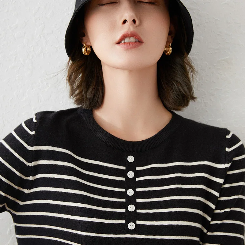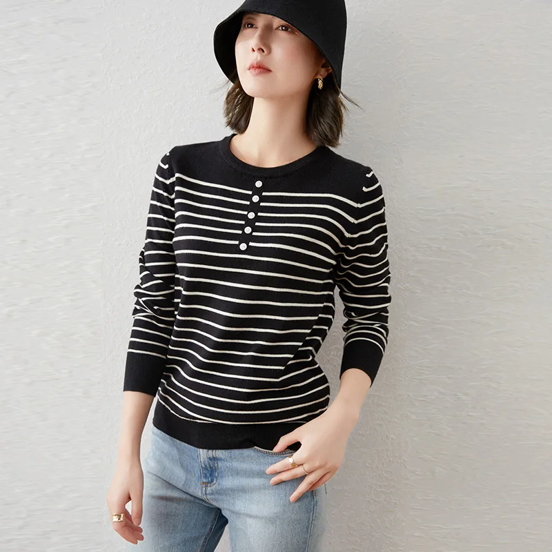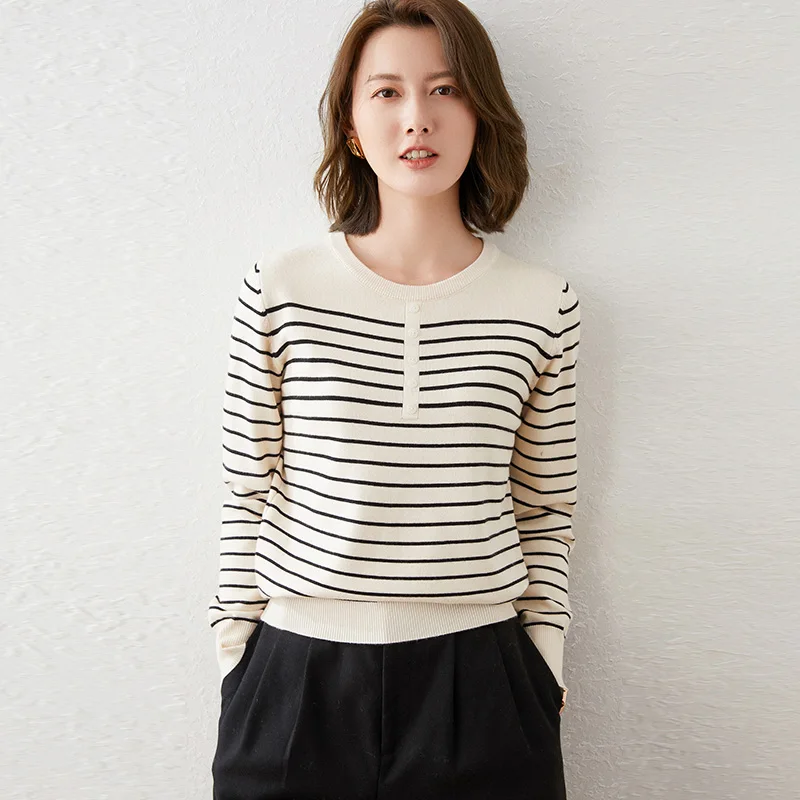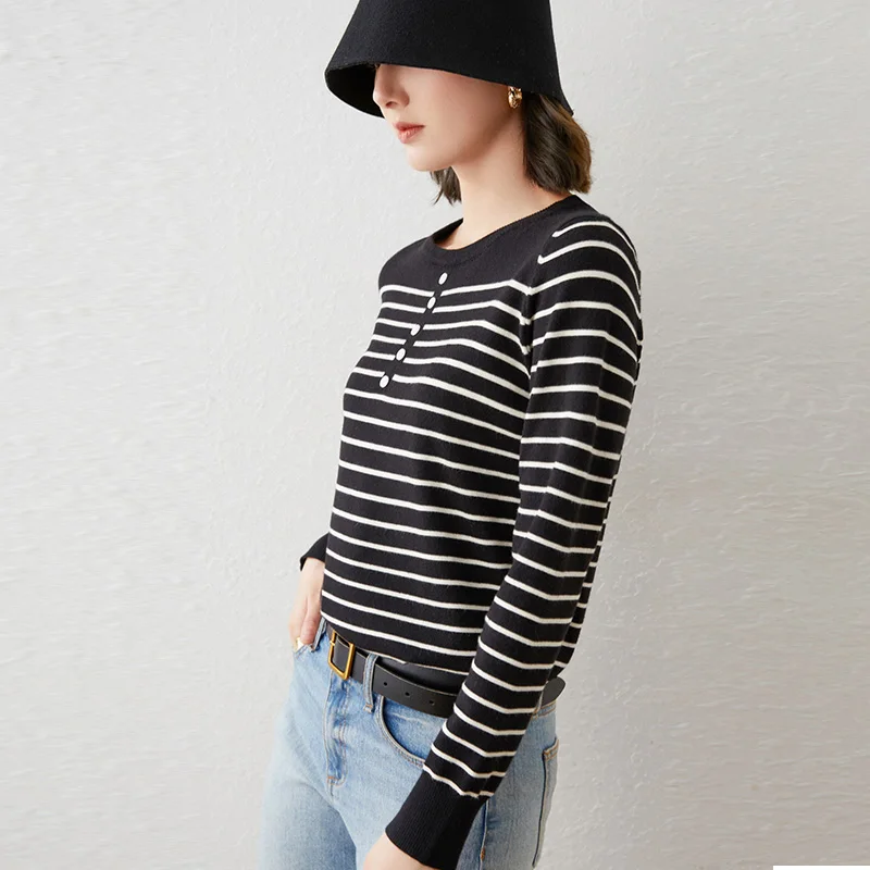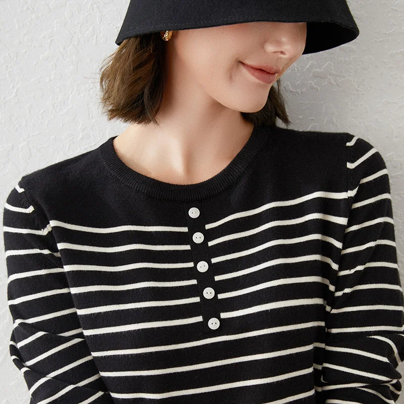 Женский свитер YSC из кашемира и шерсти, классический стиль, черно-белые полоски, теплые пуловеры высокого качества