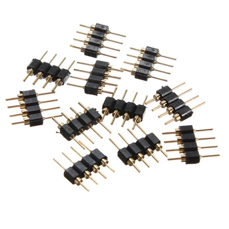 30 шт.лот чёрный 4-контактный светильник RGB Соединительный адаптер штекерные аксессуары для RGB 5050 Светодиодная лента соединение позолоченный