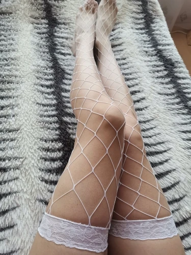 Всё соответствует описанию)) Надевать стоит максимально осторожно. Хорошо тянуться, на высокий рост подойдут, но ножки должны быть худенькими, иначе кружево будет сдавливать. И, наверное, всё же рекомендую брать сеточку поменьше, так как она, мне кажется, будет практичнее)