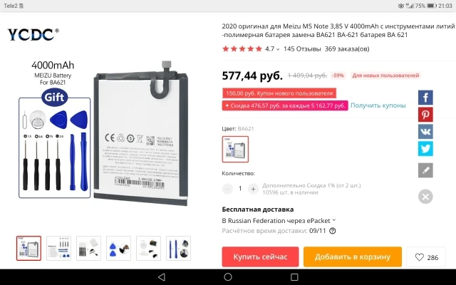 Страна: RU Доставка: Saver Shipping 11.03.2021