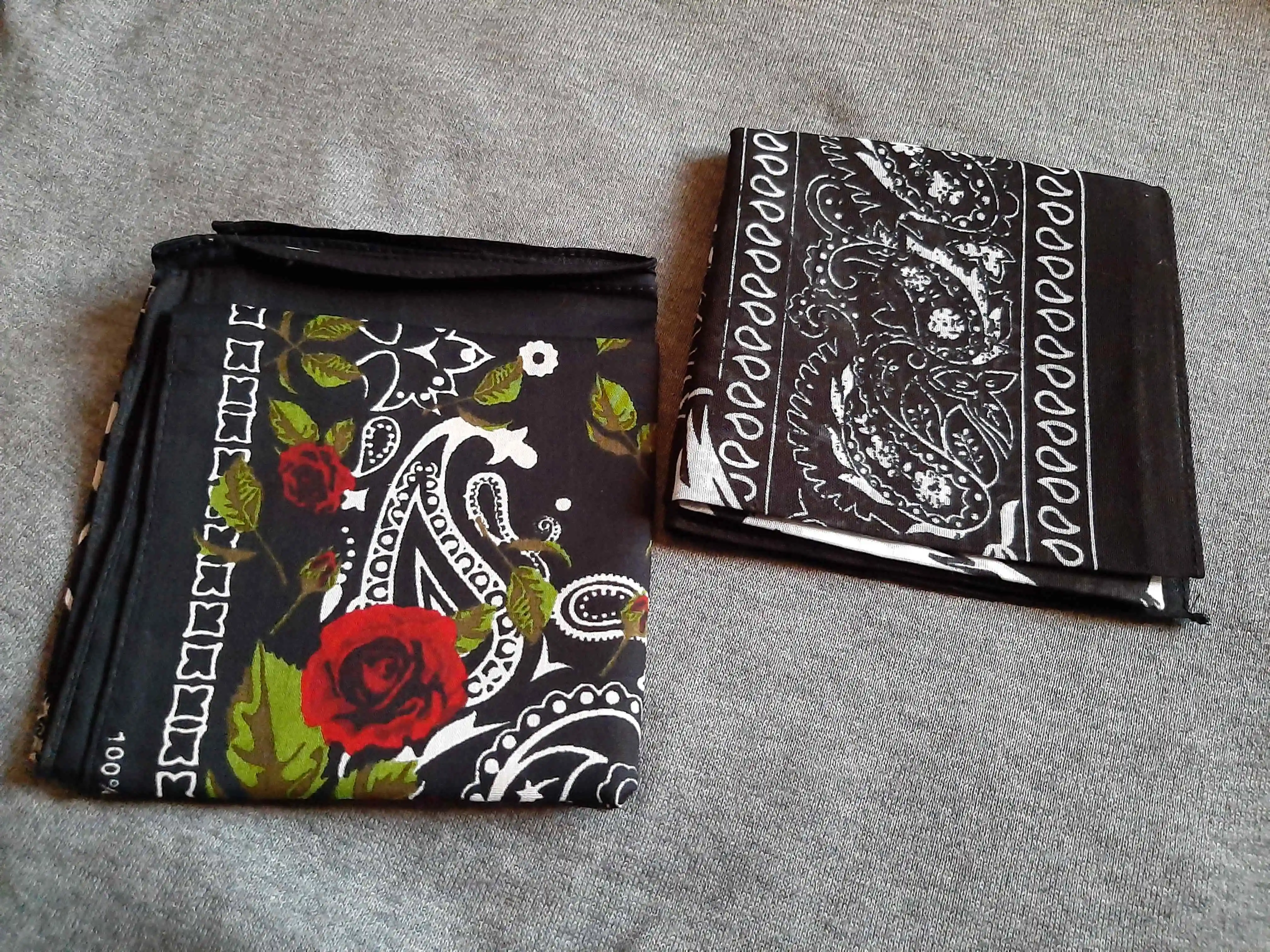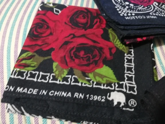 Банданы хлопковые,яркие,рисунок четкий.после стирки не полиняли.размерам соответствуют.очень быстрая доставка за 2 недели до спб.