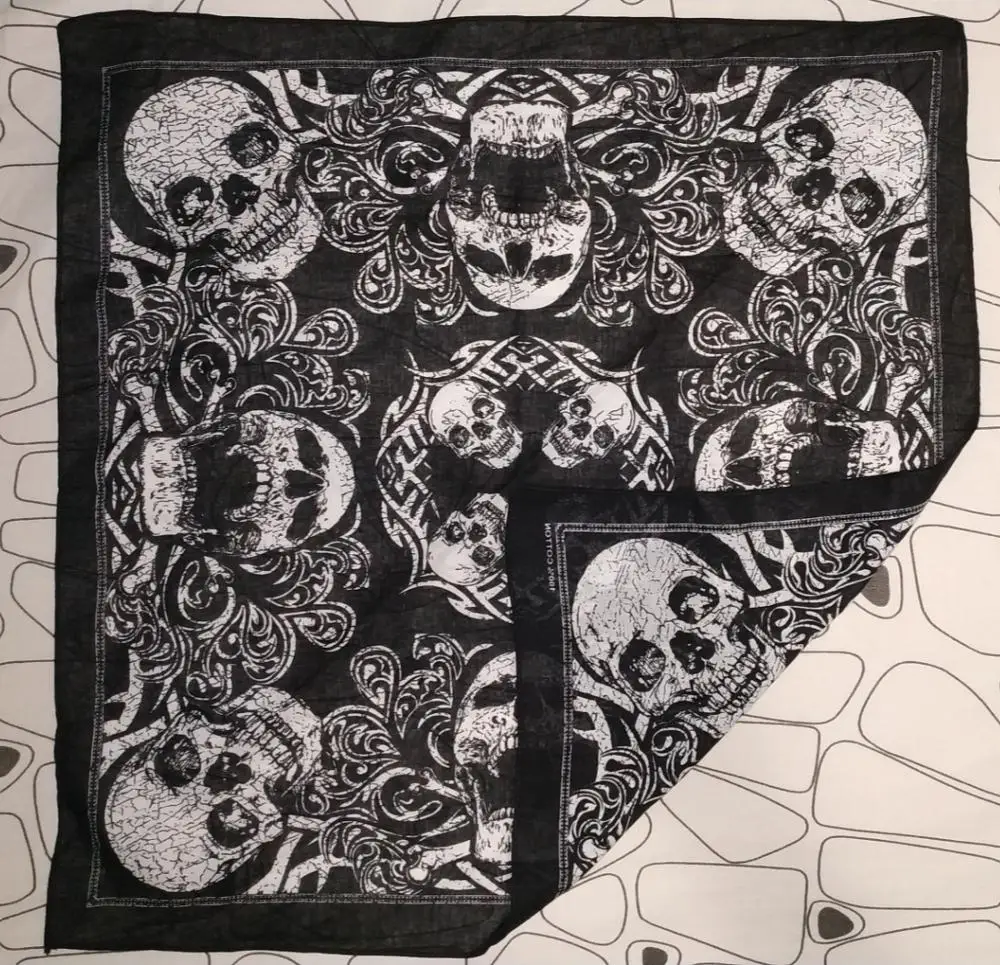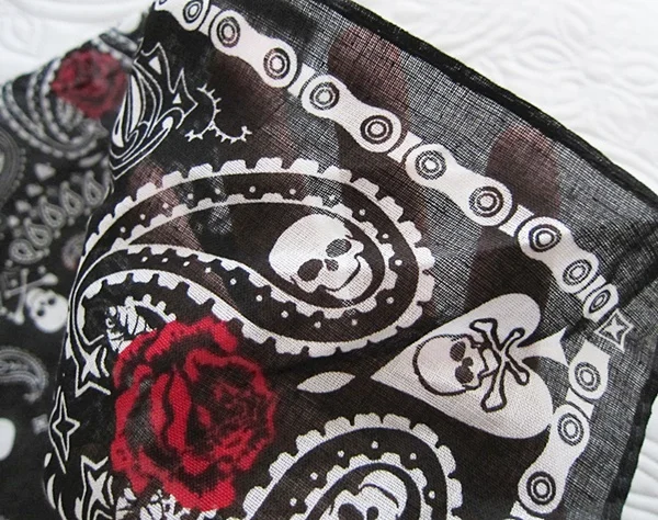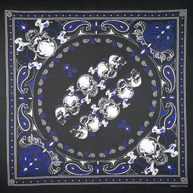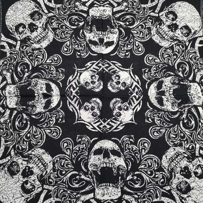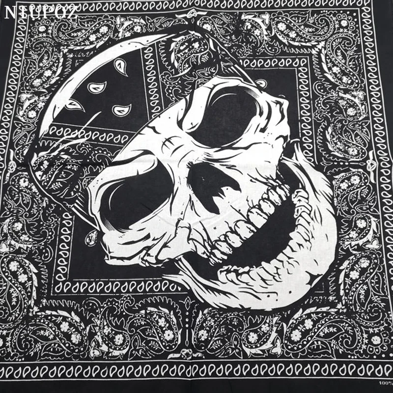 Новый дизайн, модная повязка на голову в стиле хип-хоп из 100% хлопка, квадратный шарф с черепом, черная повязка на голову с пейсли для женщинмужчинмальчиковдевочек