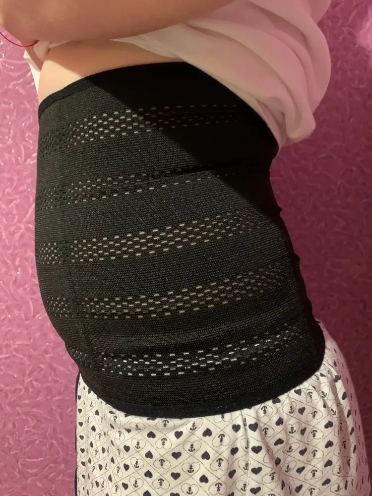 Очень быстрая доставка, прям не ожидала. Размер подойдёт я думаю, в роддоме проверю) хорошо что взяла размер Л а не М, иначе бы сильно стянул. Все же нельзя совсем сильно перетягивать живот после родов. Состояние отличное у пояса, всё качественно прошито. Спасибо!!!