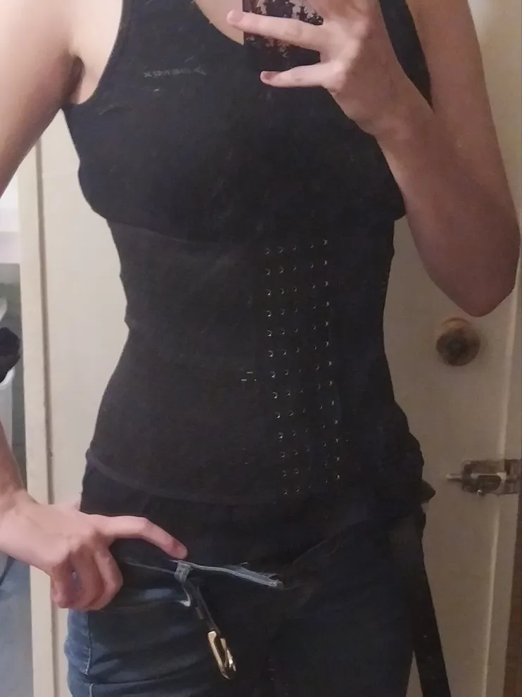 Всё супер. Утянуло видимо и сидит очень хорошо. Учтите, что при взгляде на вас со спины наличие корсета очень хорошо прослеживается.