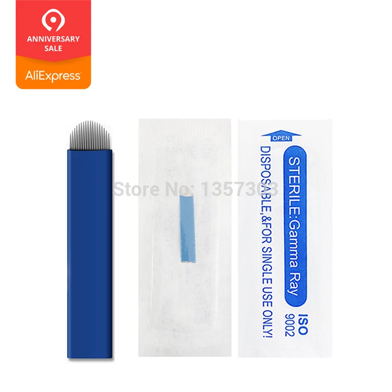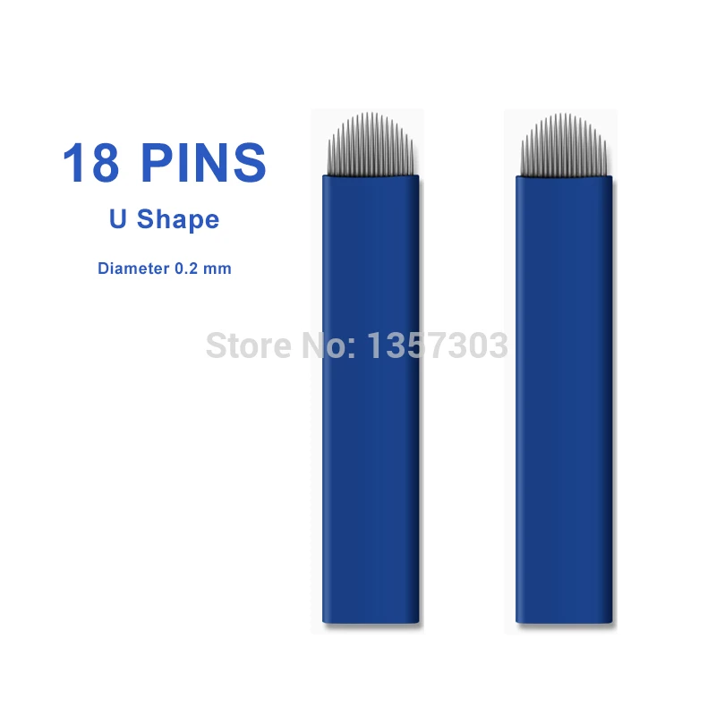 18-контактная U-образная татуировочная игла, Перманентный макияж бровей, лезвие для 3D микроблейдинга, ручка татуировки, 100 шт.