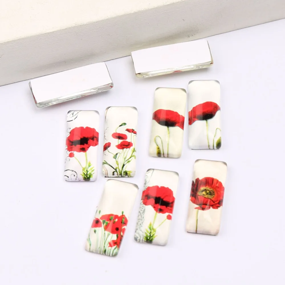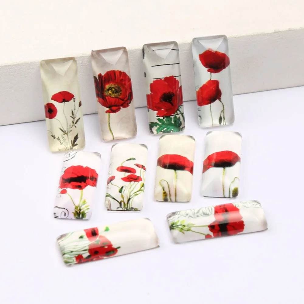 Reidgaller 20 шт. прямоугольная 10x25 мм смешанный Маковый цветок фотография круглая фотография искусственная кожа ювелирные изделия ручной работы аксессуары