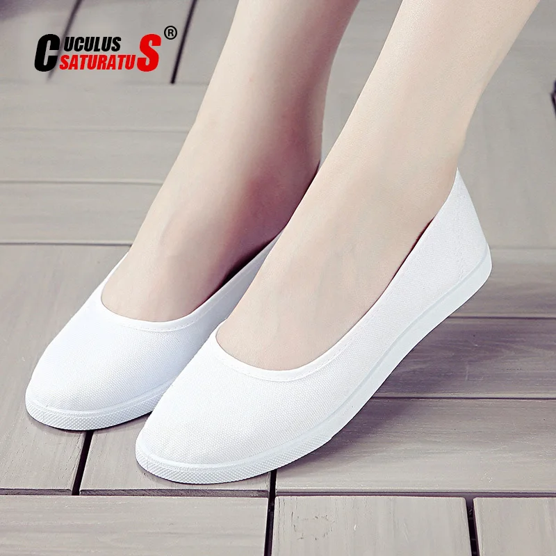 Женские белые парусиновые ботинки Cuculus, повседневные, на шнуровке, однотонные, для медсестер, обувь на плоском ходу для студентов