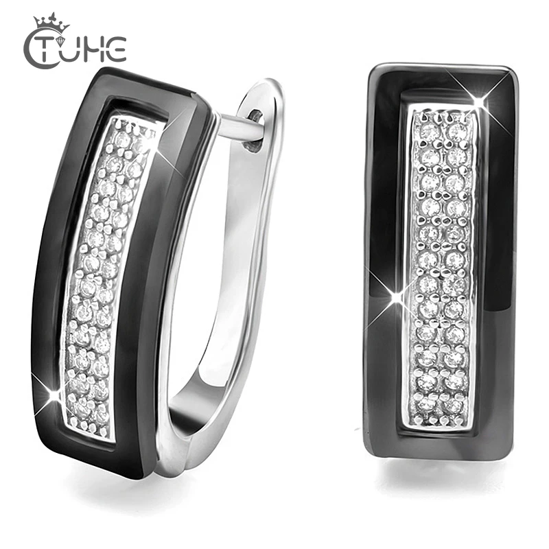 Новые серьги-гвоздики u-образной формы для женщин, ювелирные изделия для ушей, черные, белые настоящие натуральные керамические серьги аксессуары для свадьбы, помолвки