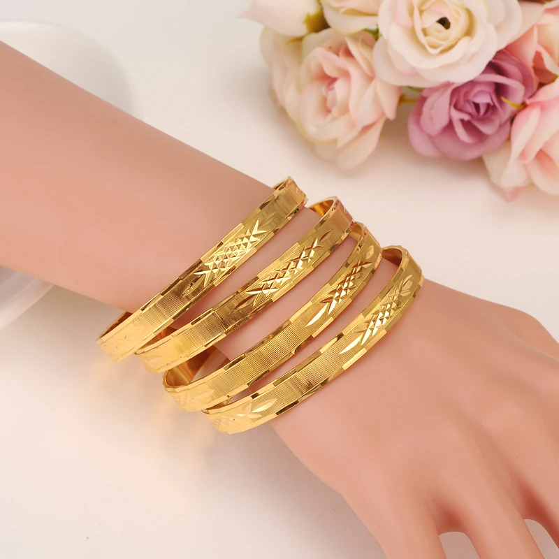 4 шт. 24-каратный золотой браслет для женщин, Дубай, Свадебный Эфиопский браслет для невесты, африканские арабский браслет, ювелирные изделия, золотой браслет с Шармами