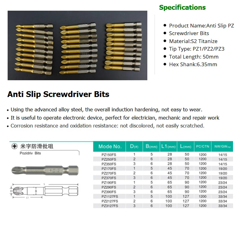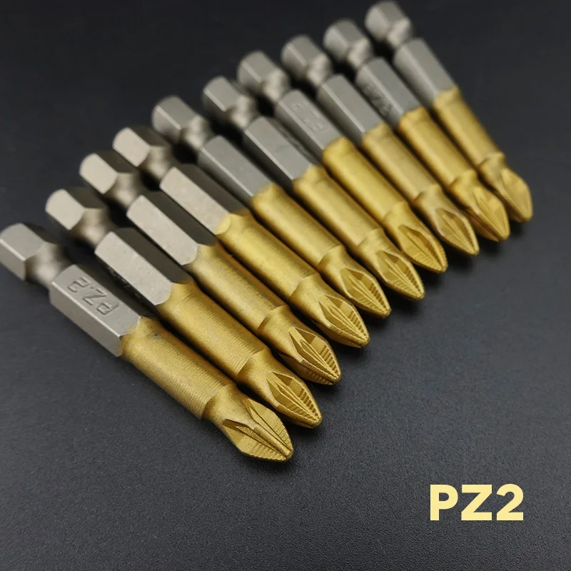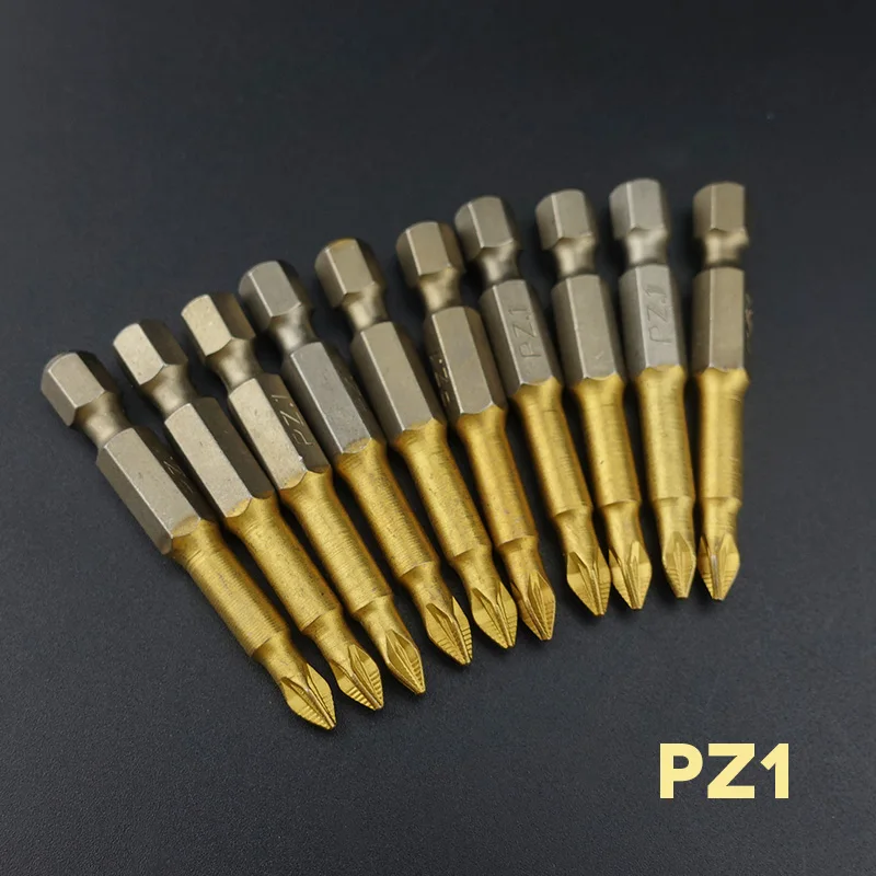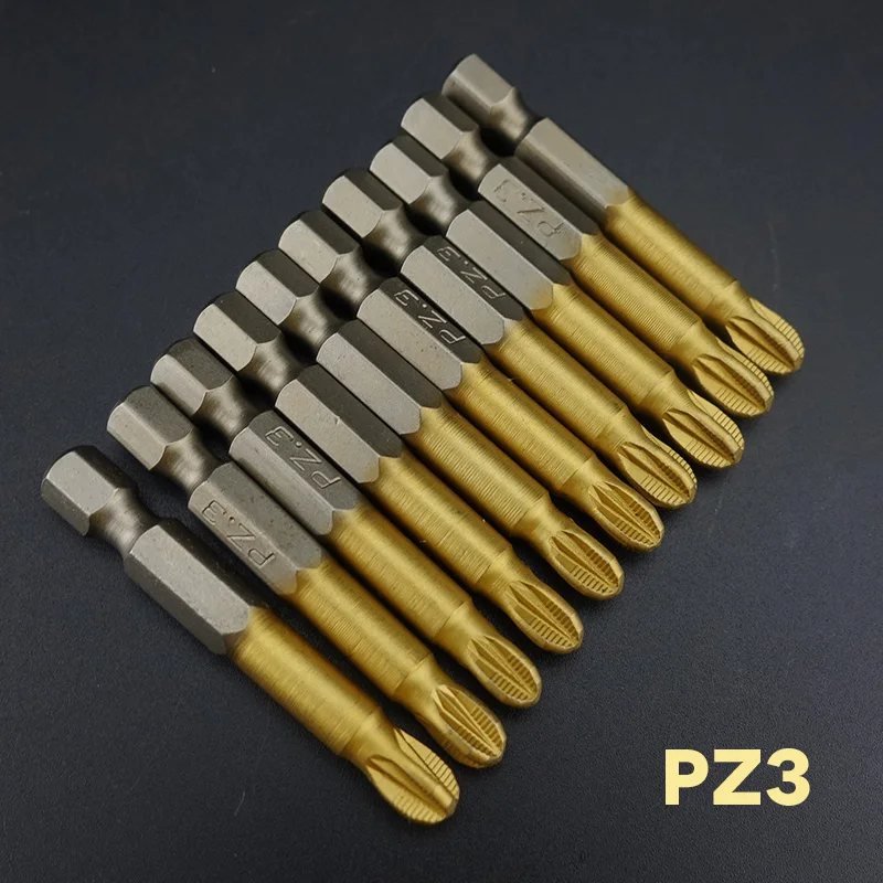 10 шт.лот 50 мм-127 мм S2 титановые биты Pozidrive с шестигранным хвостовиком, противоскользящие биты для отверток, магнитные одиночные головки PZ1 PZ2 PZ3