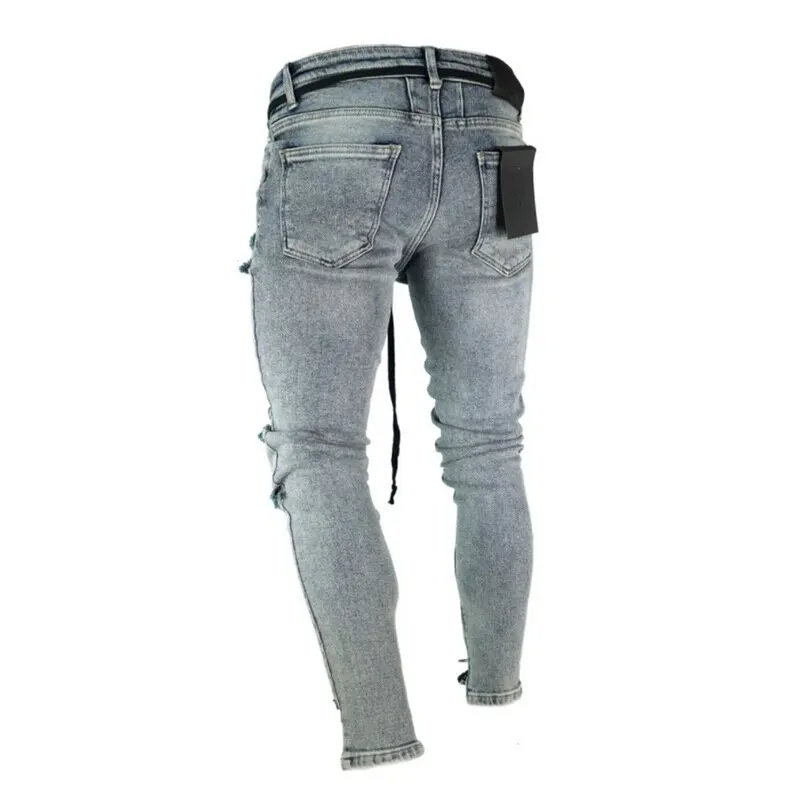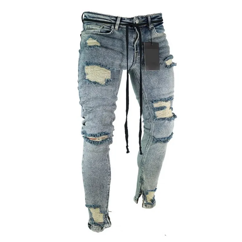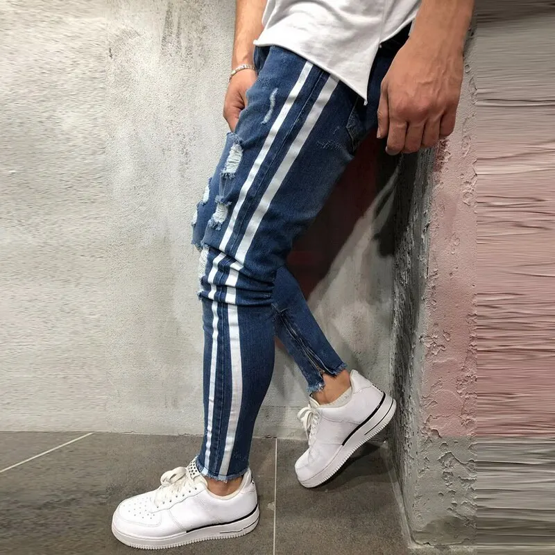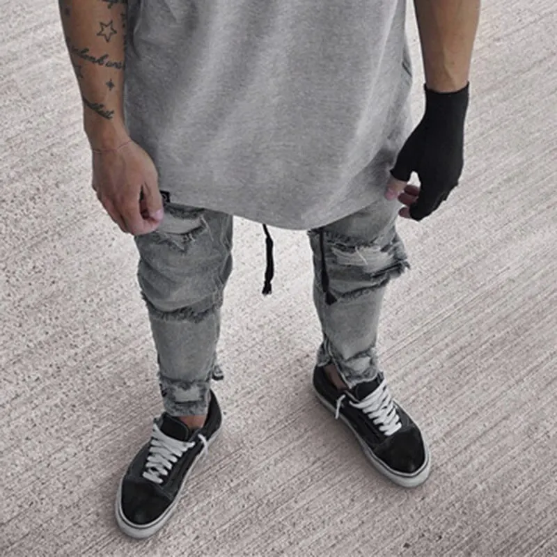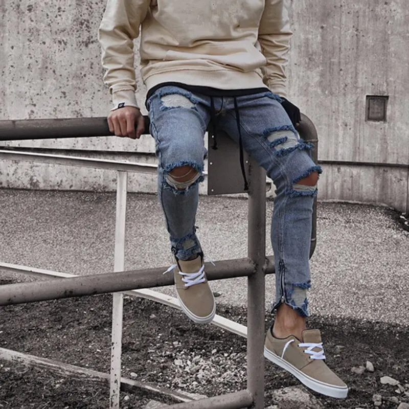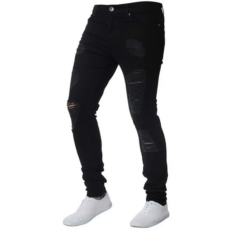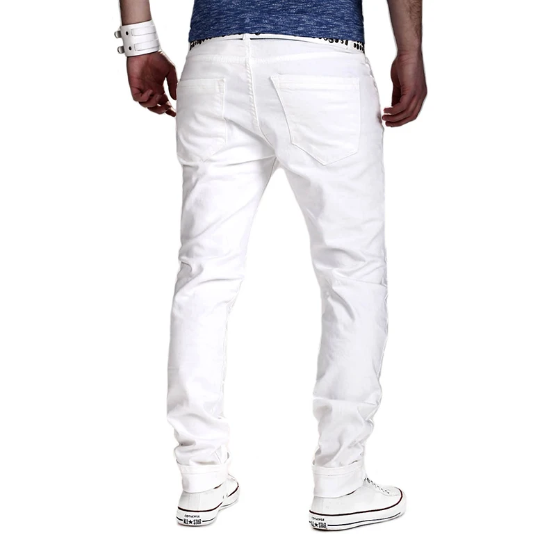 LASPERAL модные однотонные белые мужские джинсы, сексуальные рваные бедствия потертые облегающие мужские джинсы Повседневная Верхняя одежда в стиле хип штаны 2019